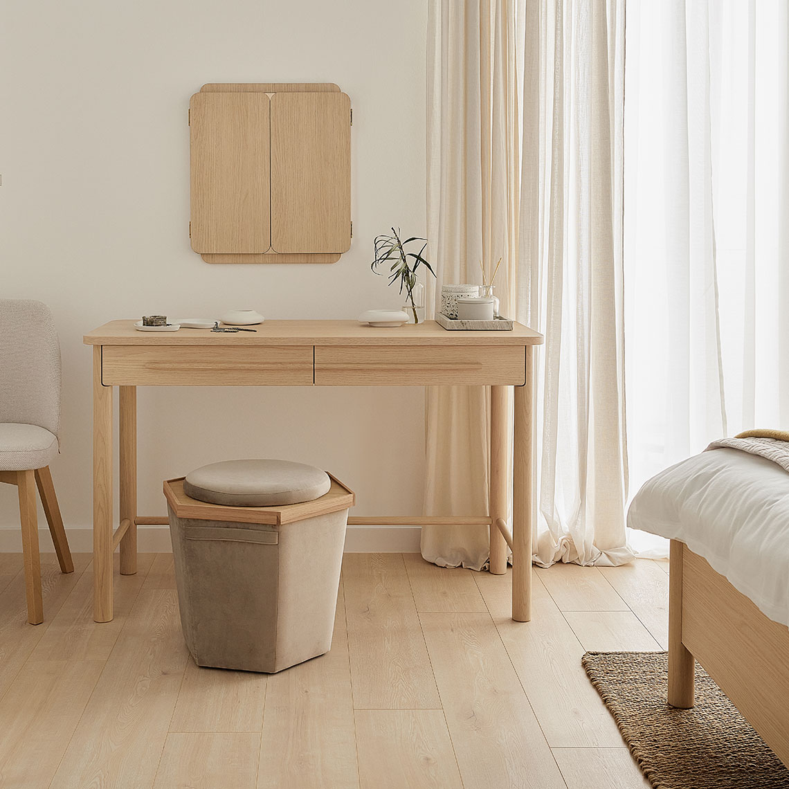 - Le miroir peut fonctionner indépendamment ou former un duo harmonieux avec la coiffeuse OMM.