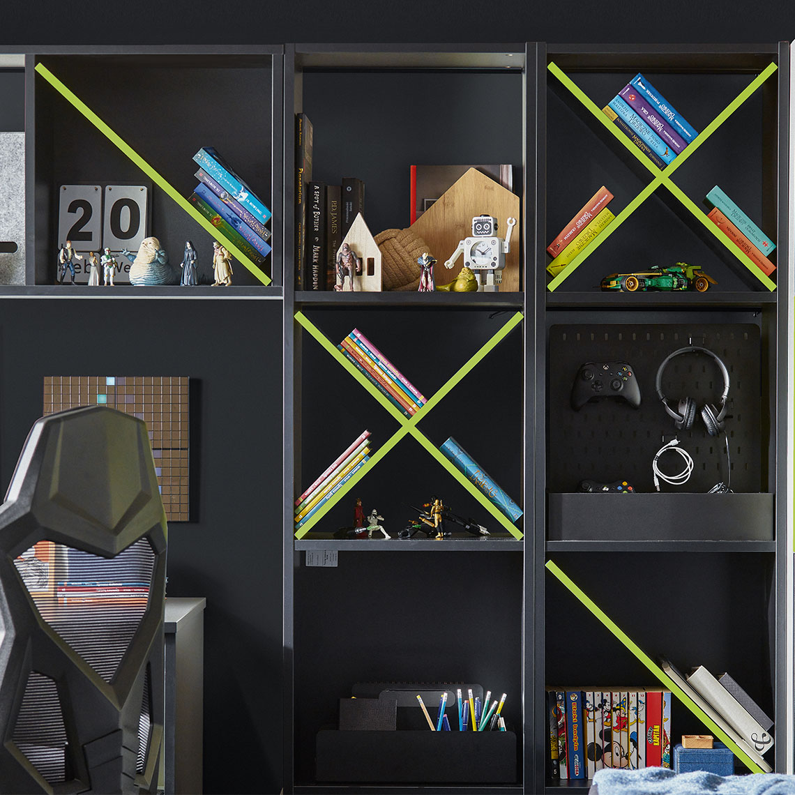 Il est difficile de trouver une place permanente pour ses écouteurs préférés, ses consoles ou les nombreux câbles de recharge des appareils électroniques. Le problème de leur organisation est résolu par le présentoir double face de la collection Young Users.