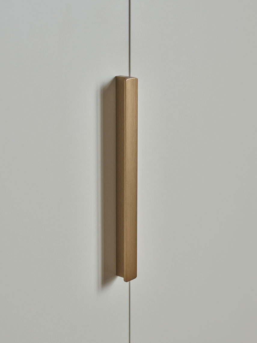 Nous avons créé une gamme de poignées dédiées au système d'armoires Stor. Chaque poignée donne la touche finale à un meuble. Les variantes fines et longues sont extrêmement décoratives, tandis que celles en bois ou en or orneront l'ensemble plus subtilement.