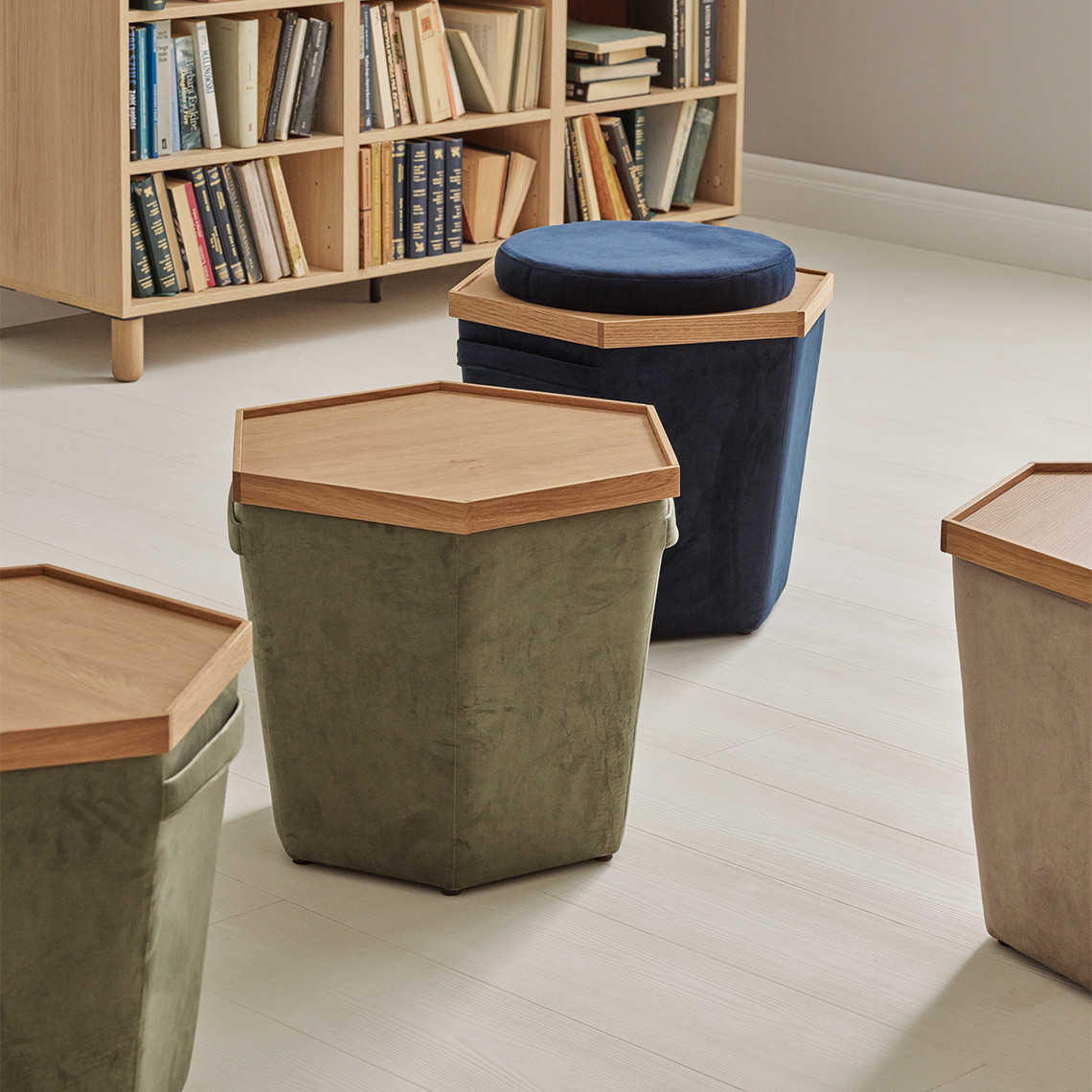 Doppio est disponible en trois couleurs. Le pouf est doté d'un couvercle à deux faces qui lui permet de servir à la fois de table et de pouf pour s'asseoir. Lorsque le couvercle sert de table, son rebord surélevé protège le pouf contre les inondations si vous renversez un verre d'eau, par exemple. L'intérieur du pouf est doté d'un compartiment doublé pour ranger une couverture, un coussin, des accessoires de loisirs créatifs, des journaux, etc. Les poufs de la collection Doppio peuvent être combinés les uns avec les autres pour créer un meuble unique. Grâce à la forme du couvercle, ils s'emboîtent parfaitement et permettent de créer une table plus grande dans la forme de votre choix.