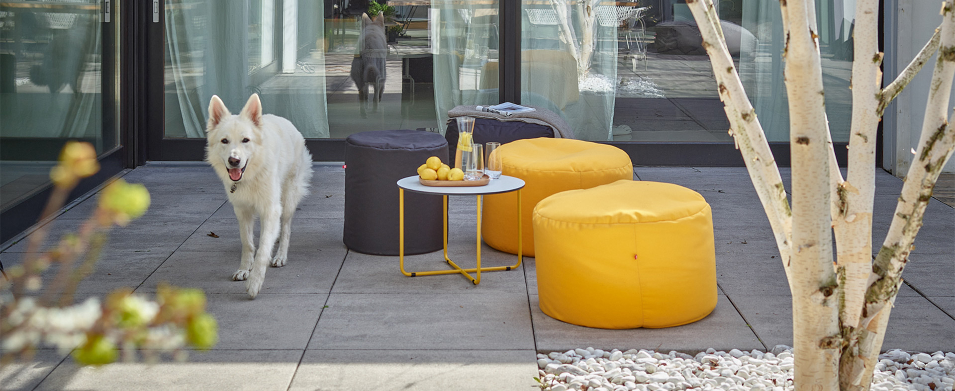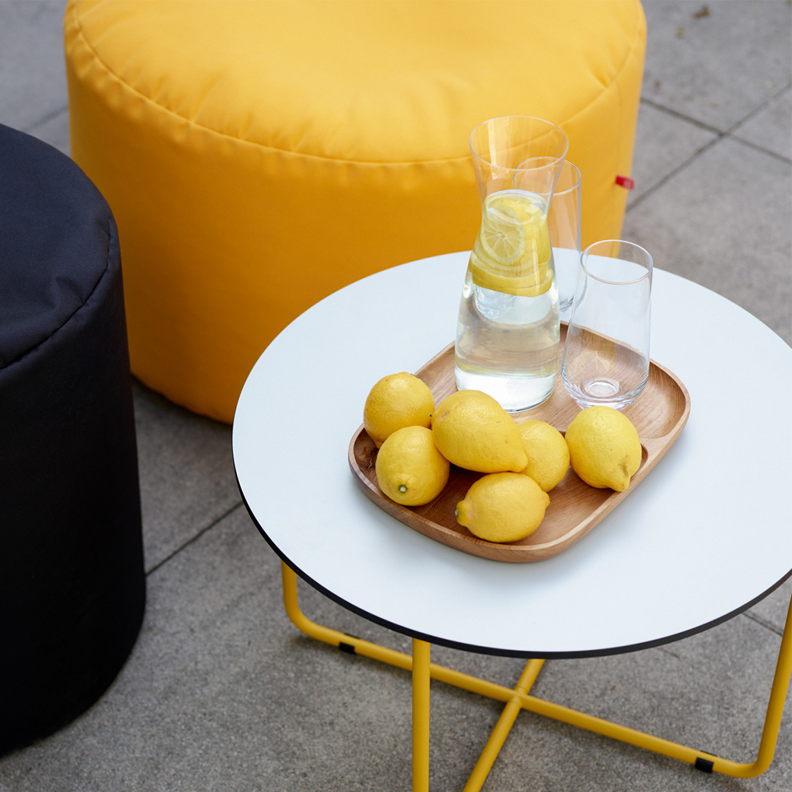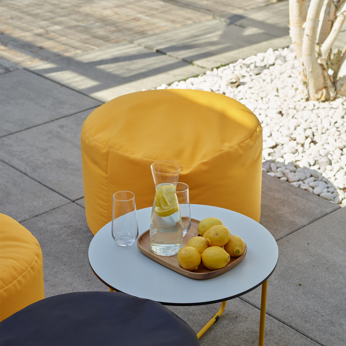Un pouf large et ultraléger qui fait également office de table. Il peut être utilisé aussi bien sur la terrasse et dans le jardin qu'à l'intérieur de la maison.