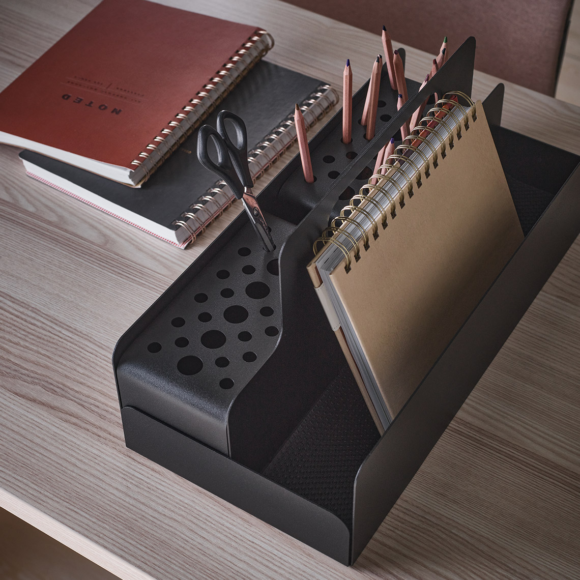 - D'autres accessoires sont également disponibles dans la collection Young Users, tels qu'un présentoir pour le rangement pratique des câbles et des petits objets électroniques.