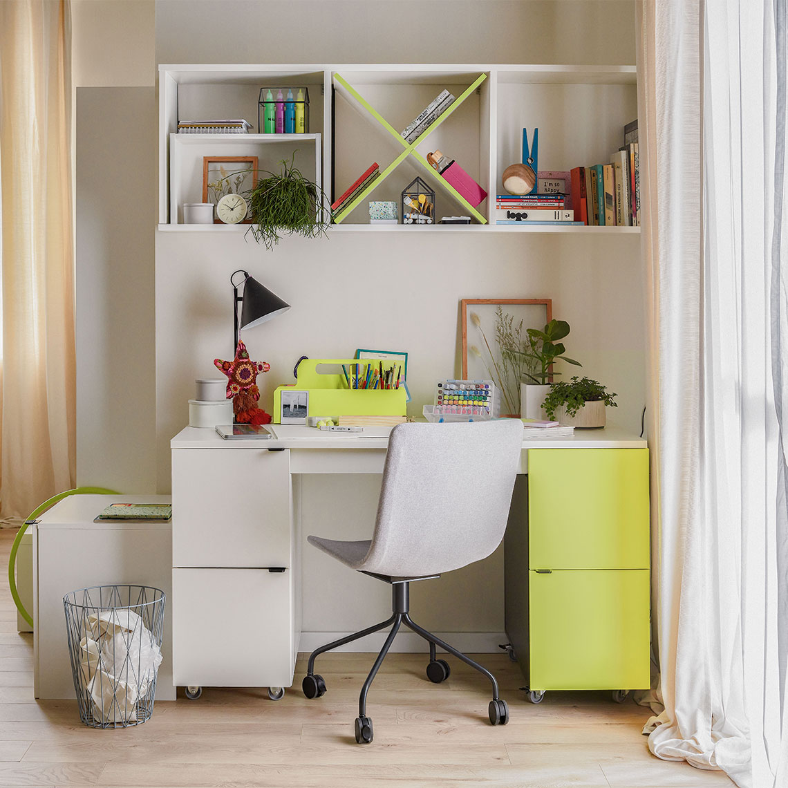Cet organisateur multifonctionnel fait office de boîte à outils dans la chambre de votre enfant. Il permet de ranger et de trier toute une série de petits objets : accessoires d'écriture, câbles, blocs-notes ou objets de loisir.