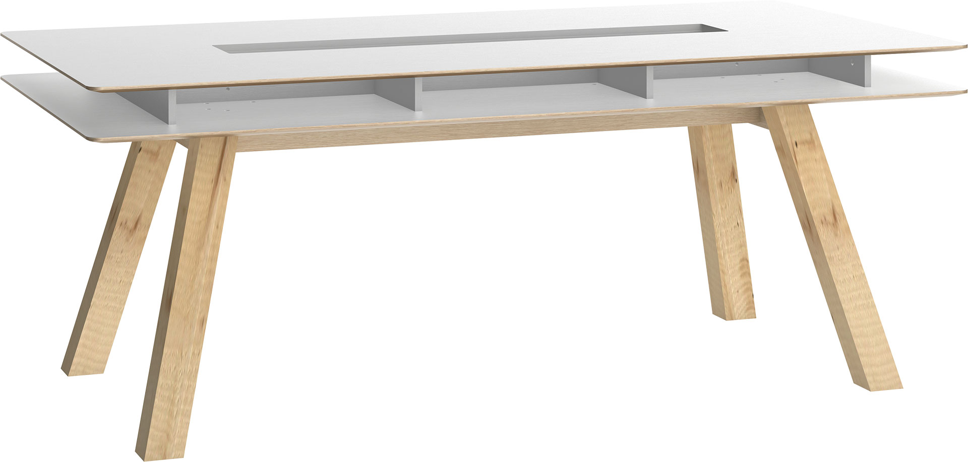 - L'espace entre les deux plateaux de la table est idéal pour ranger de petits objets. Ce que vous voulez cacher peut être rangé dans les tiroirs spacieux, qui sont achetés séparément. La table peut en accueillir jusqu'à 6 !