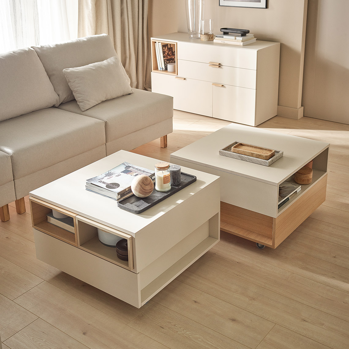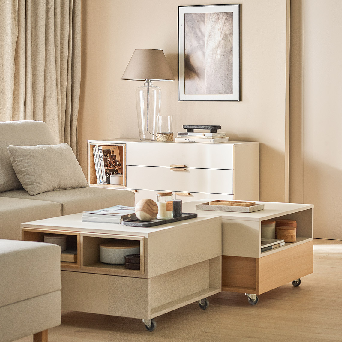 Choisissez une table basse de la collection 4 You Fresh pour compléter votre décoration intérieure et offrir un espace confortable pour poser votre tasse de café, votre télécommande ou votre livre préféré. Dotée d'un tiroir, d'une niche et de roulettes ou de pieds au choix, elle peut relever tous les défis de la détente. N'hésitez pas à le réorganiser et à ajouter des boîtes pour ranger les petits objets. Elle existe également en version unicolore.