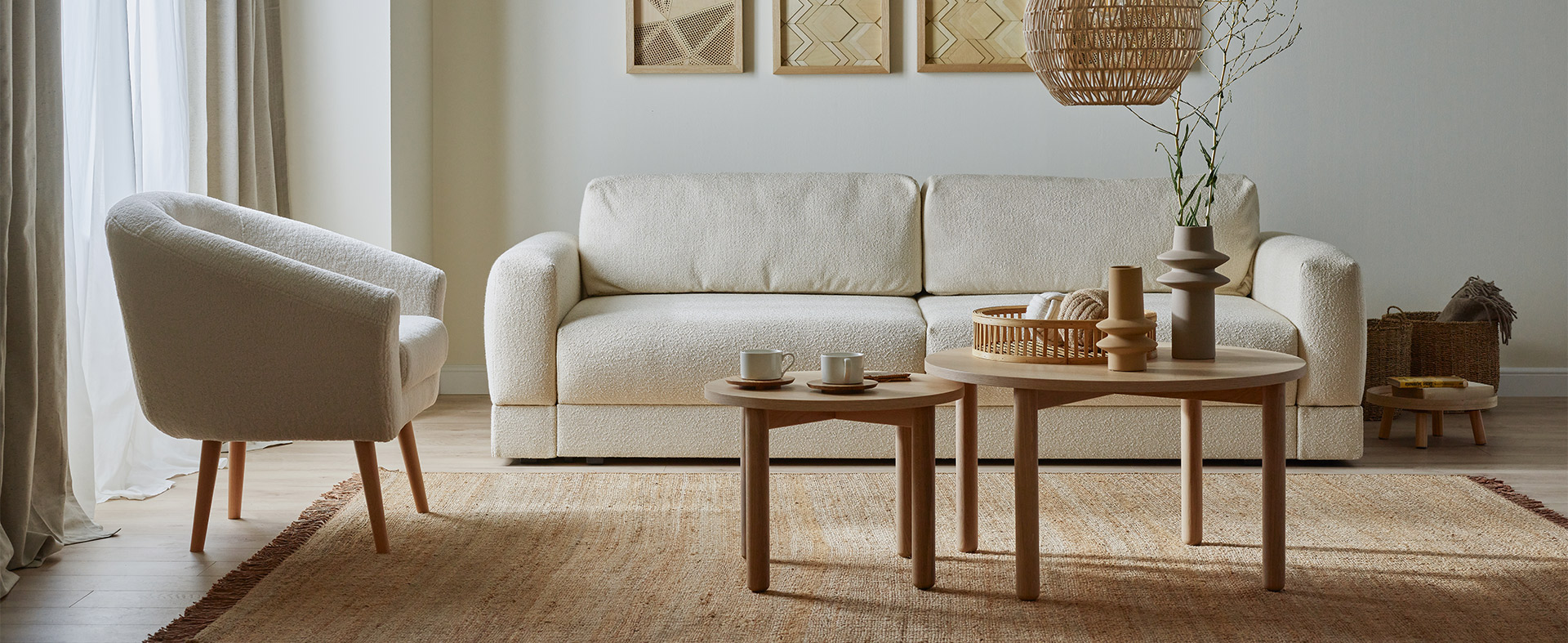 - La table basse est également disponible dans une taille plus petite et dans une version rectangulaire. Combinées ensemble, elles créeront une composition intéressante dans votre salon.