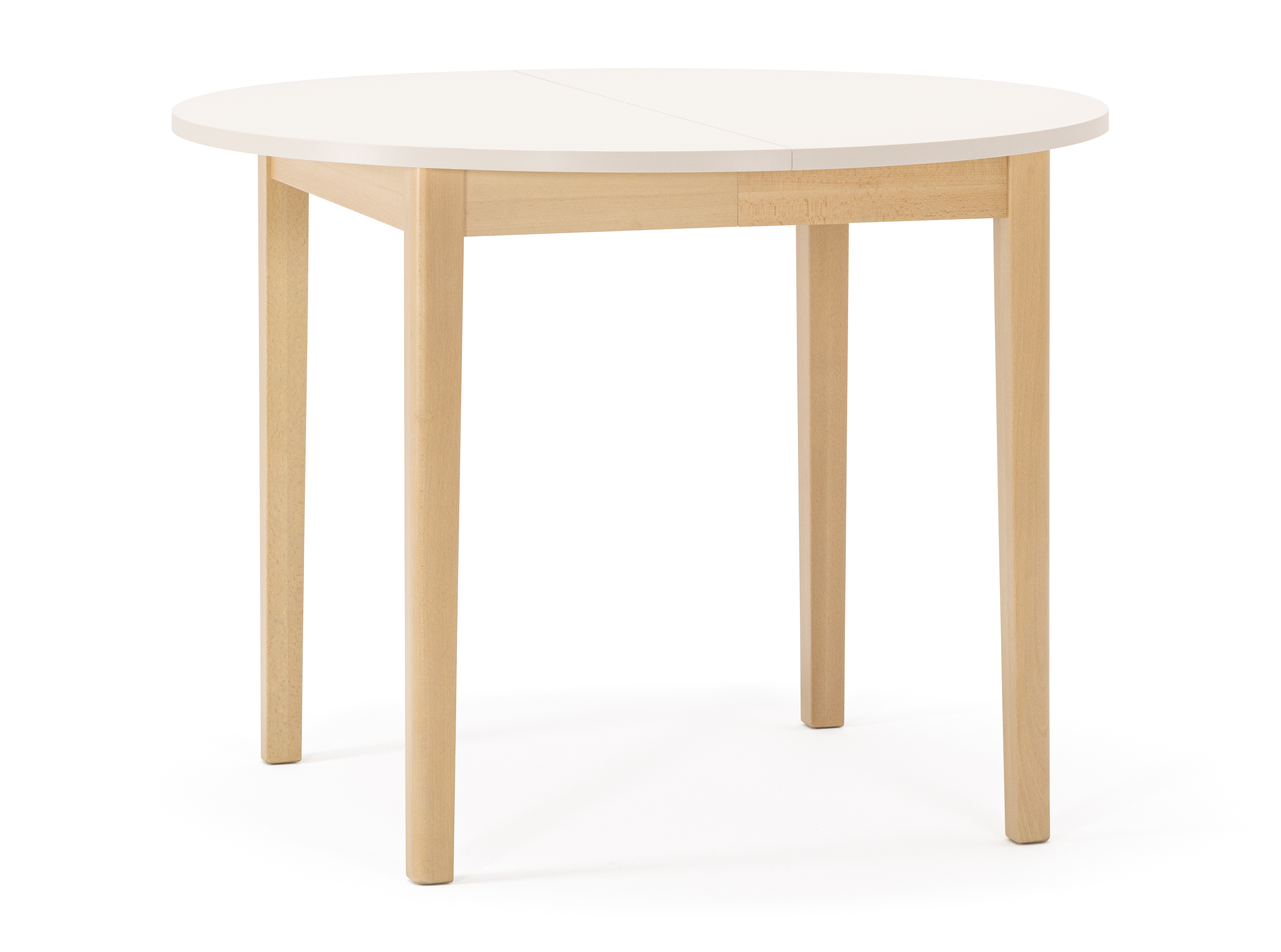 - Le plateau peut être élargi à une forme ovale de 140 cm en prolongeant ses bords et en plaçant l'insert fourni sur les patins. Dans la version allongée, elle peut accueillir 6 ou 8 personnes si les chaises sont placées plus près les unes des autres. Le mécanisme de dépliage utilisé ne nécessite pas de support supplémentaire, de sorte que chacun peut s'asseoir confortablement et disposer d'un espace illimité pour les jambes. L'insert supplémentaire se range à l'extérieur de la structure de la table.