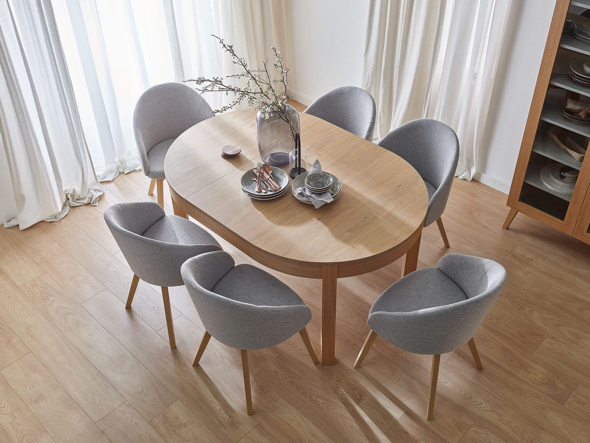 - Définissez la table de vos rêves en choisissant l'une des trois versions de couleur (blanc, gris ou chêne).