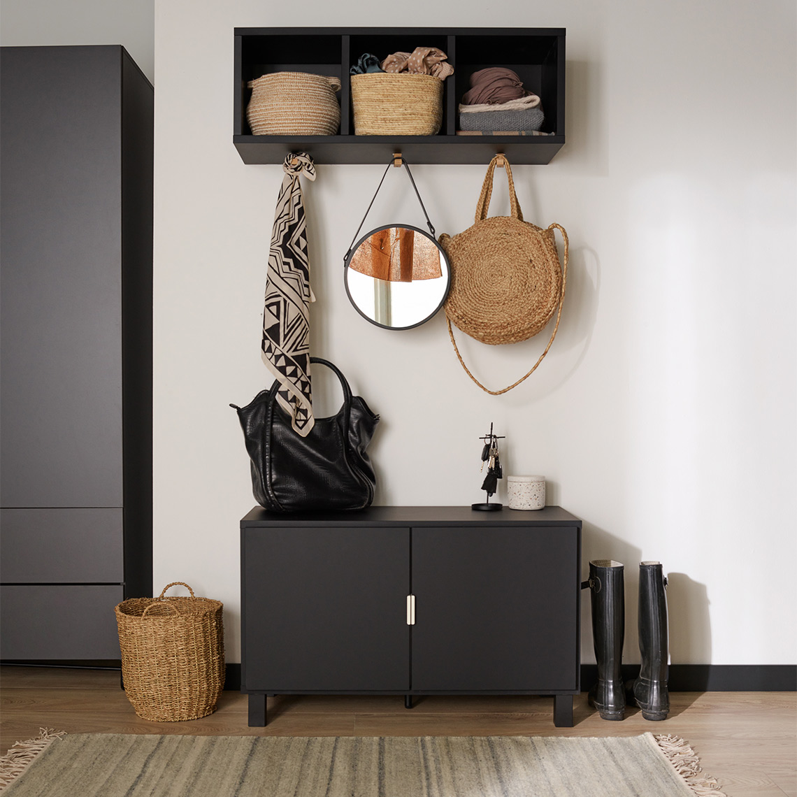 - Les séparateurs verticaux à l'intérieur de l'étagère sont réglables en hauteur, ce qui vous permet de modifier leur position et de les adapter à la taille des objets que vous souhaitez ranger dans les différentes niches.