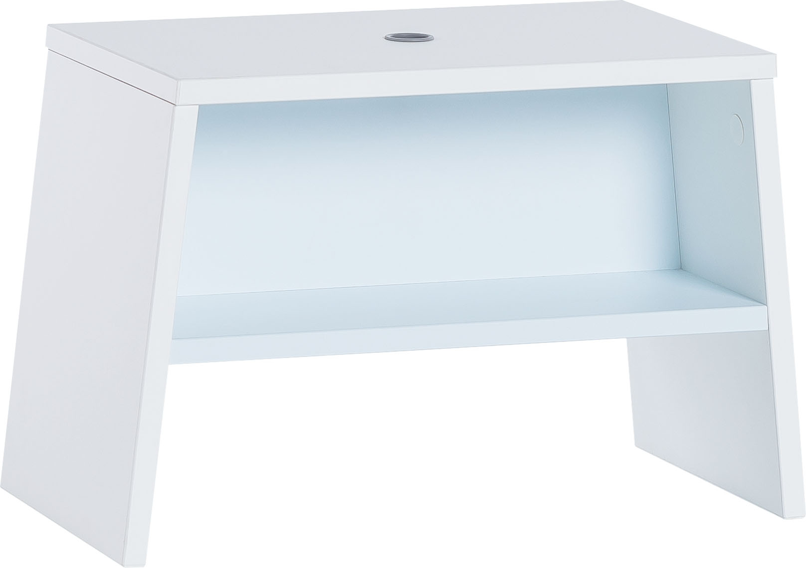 Le tabouret Tuli est disponible en 4 versions de couleurs douces. Le corps du meuble peut être bleu, tandis que la tablette et le panneau arrière peuvent être verts. Il est également possible de choisir entre le blanc et le bleu, le vert et le jaune et le jaune et le rose.
