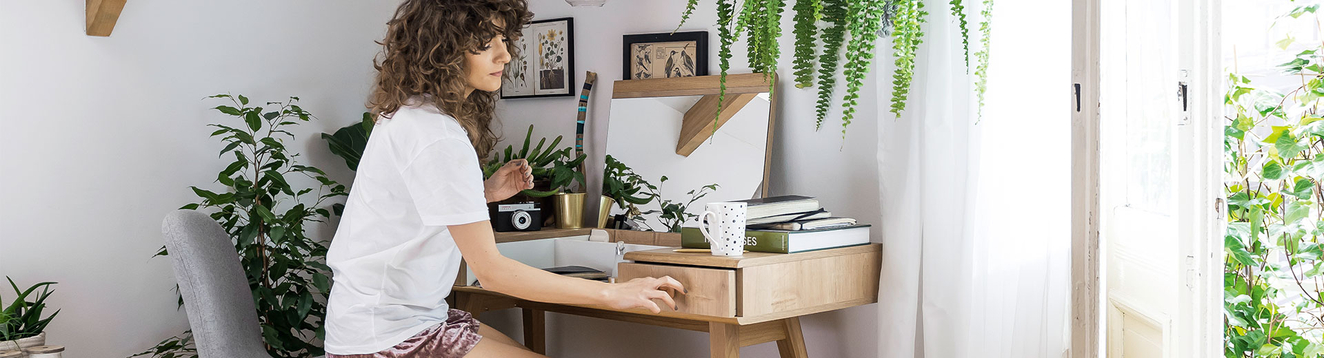 Let's pay attention to solutions that allow even better use of space. An example is a multifunctional dressing table with a mirror, which can be folded, gaining a table ideal for work. In the offer of the VOX store there is also a dressing table with an extended top, which can be rested on a low bookcase, and a model equipped with a rail, on which we can mount a mirror.