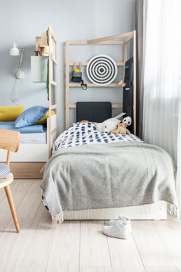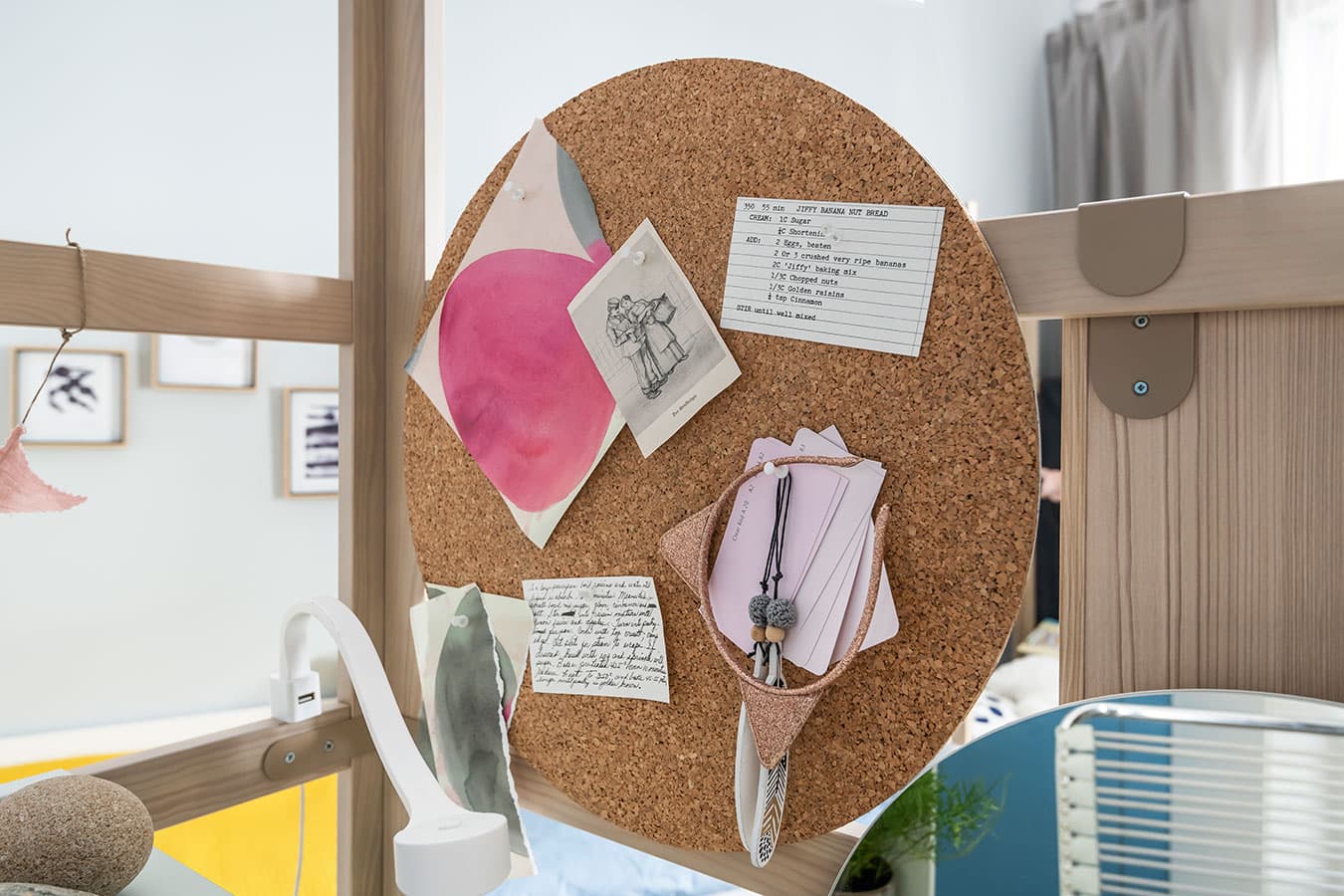 Desk and bed ladders, made of natural pine wood, allow you to create your own spaces for studying, playing, relaxing or meeting friends. You can hang accessories on them, such as colourful boxes or a cork board, or handmade artwork and decorations.