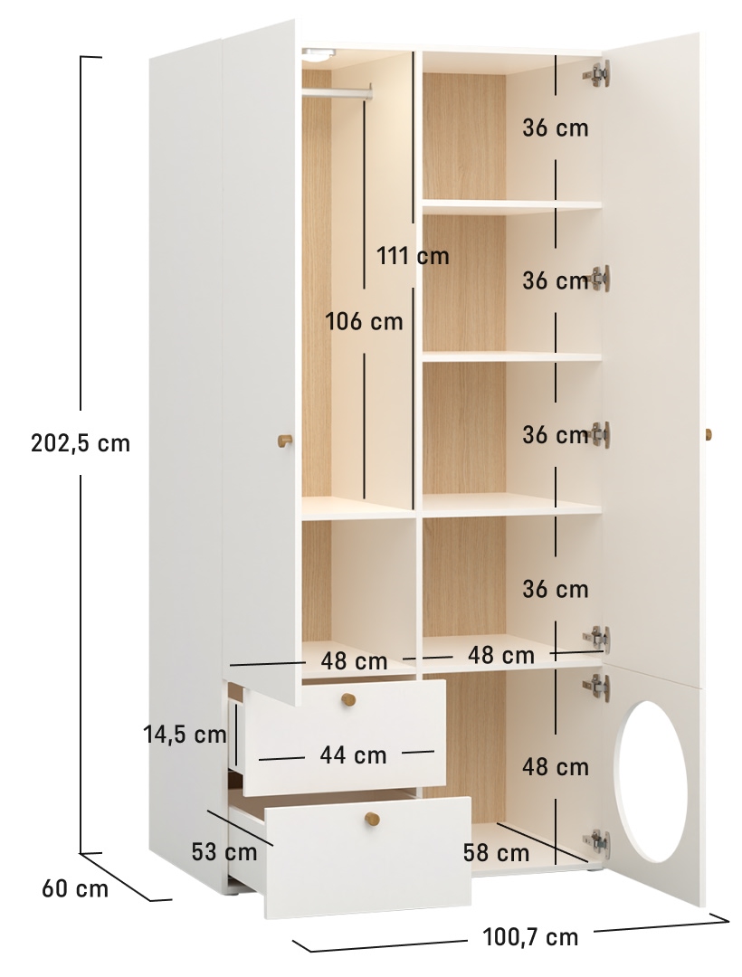 width: 100.7 cmheight: 202.5 cmDepth: 60 cm
