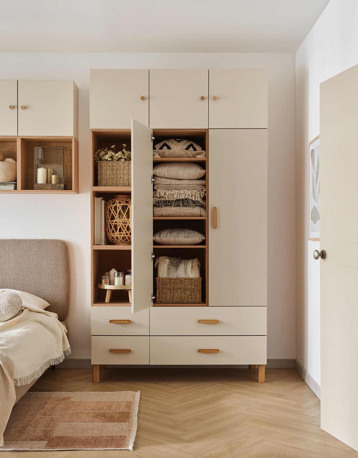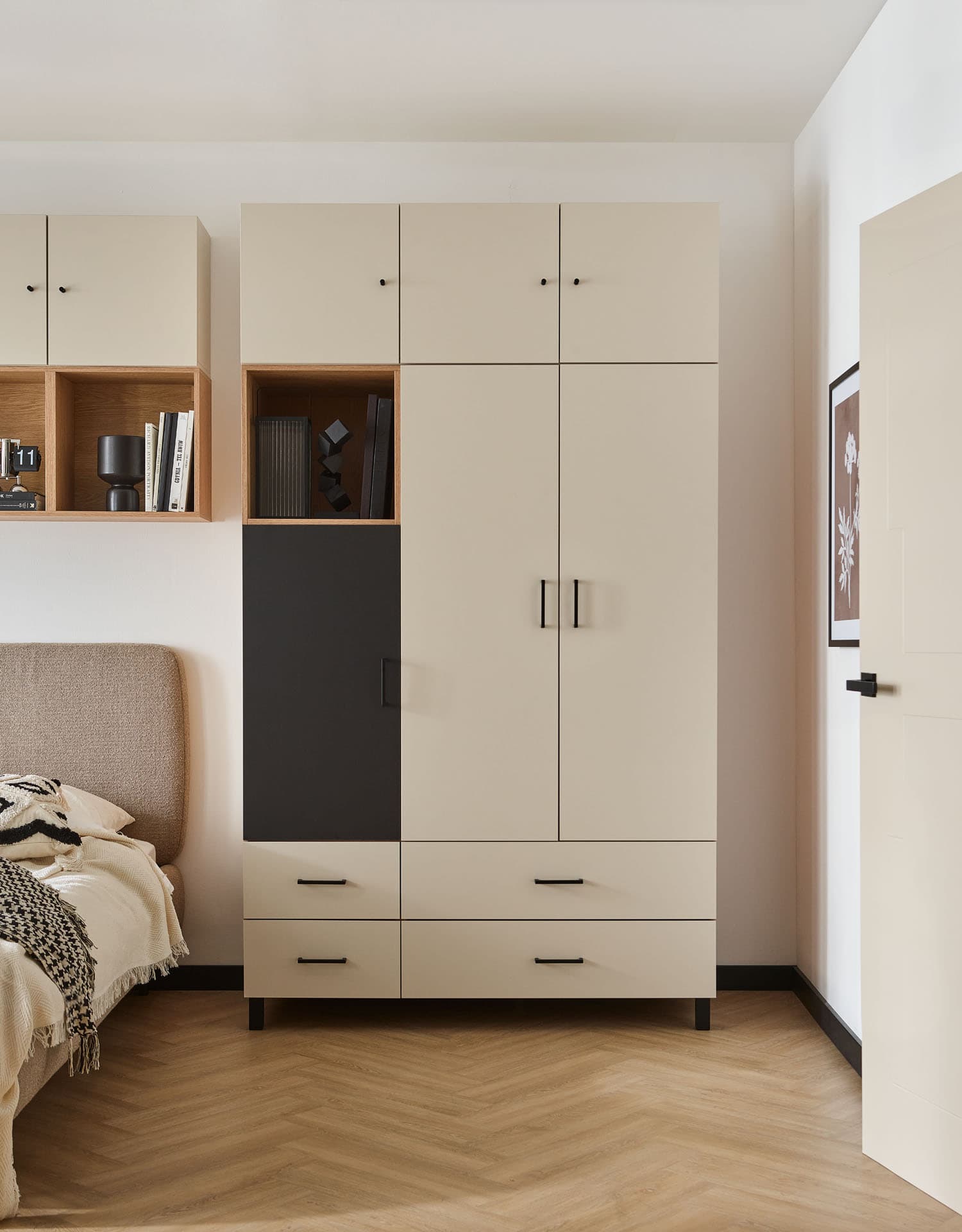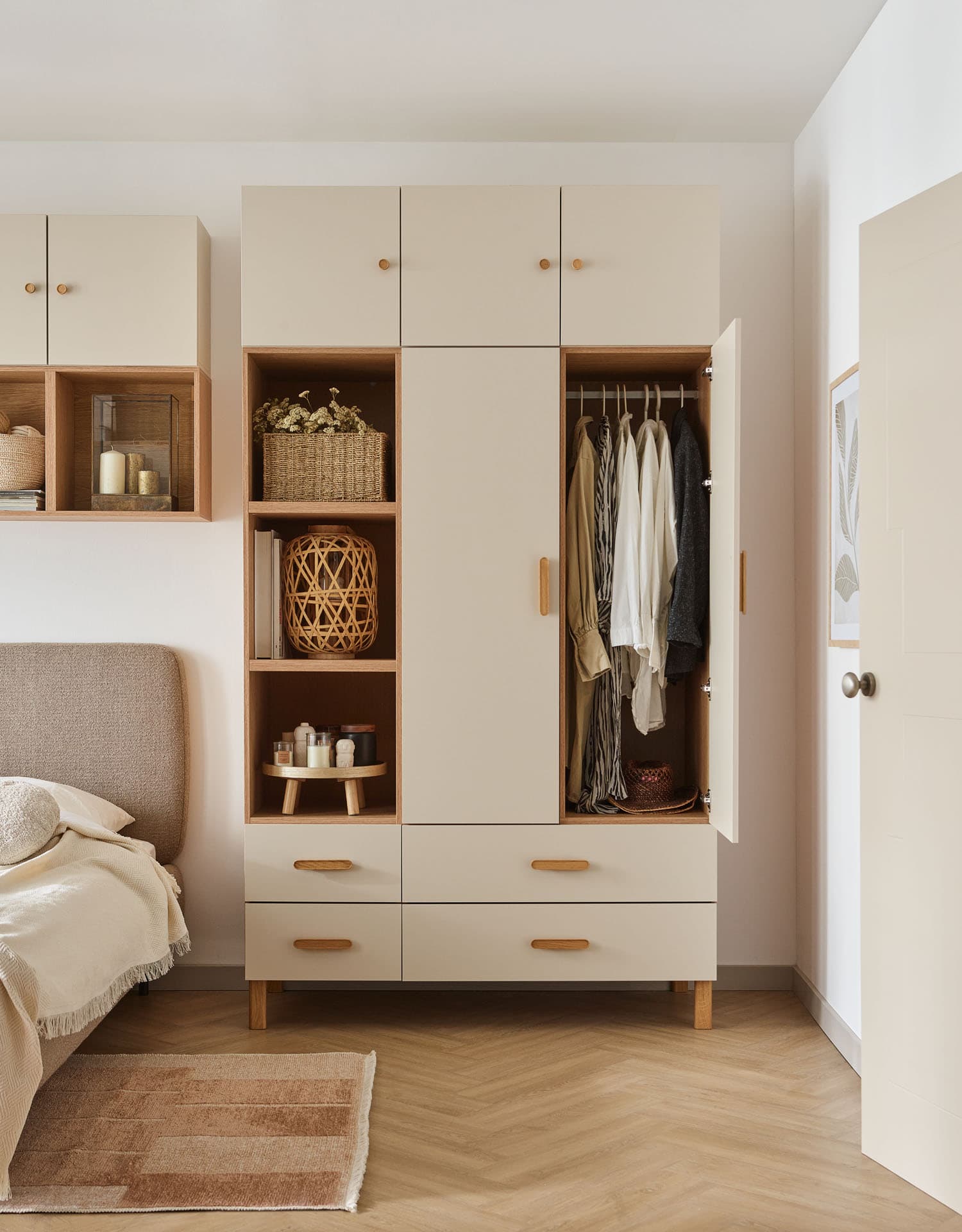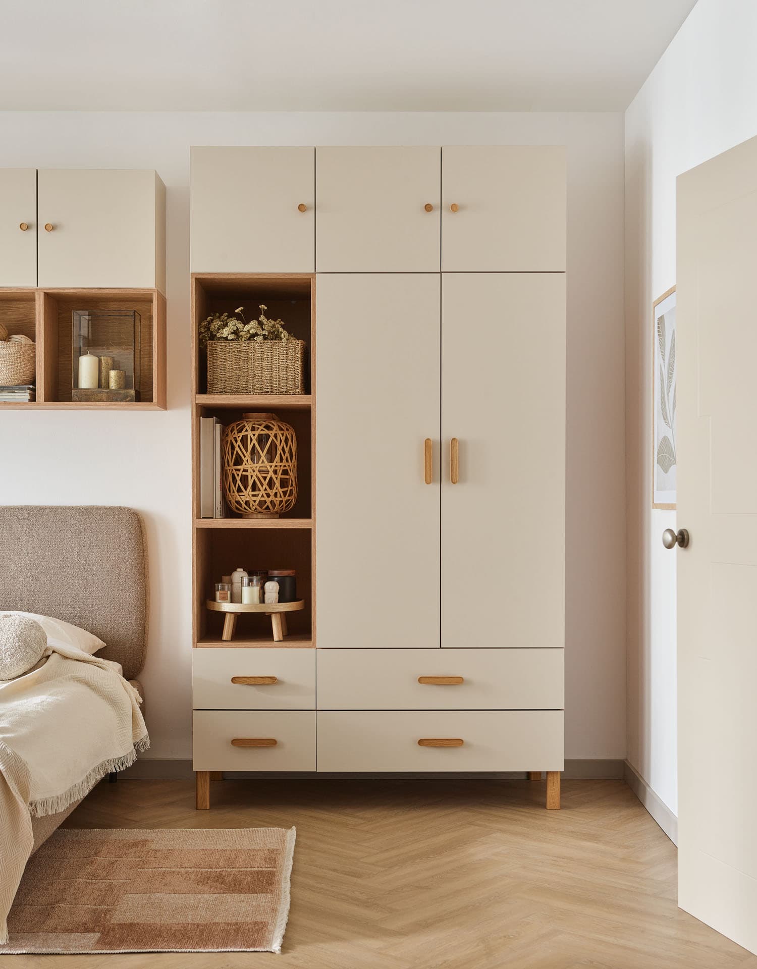 • Personalize the look of your closet by matching it with practical pieces. Choose parts of different sizes: shelves (88 cm or 42,5 cm), drawers (50 or 100 cm wide) and hanger rods (long - 88 cm or shorter - 42,5 cm).