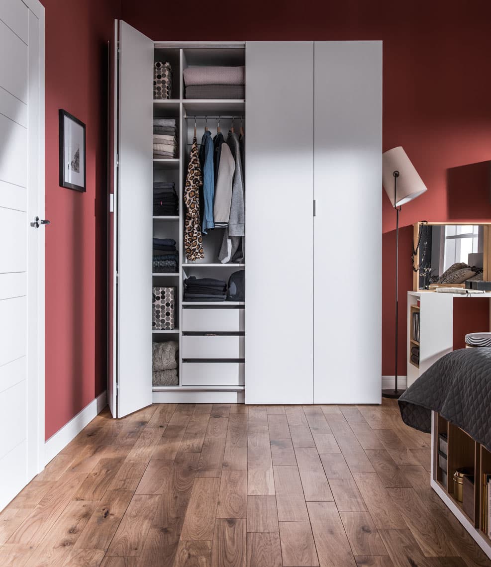 - The sliding doors of the closet fold like an accordion. This way you will always have all your clothes and accessories at hand.
