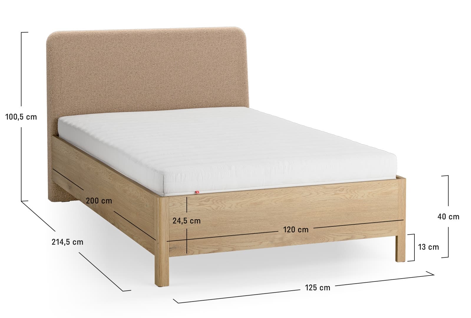 - The body of the bed in oak color.