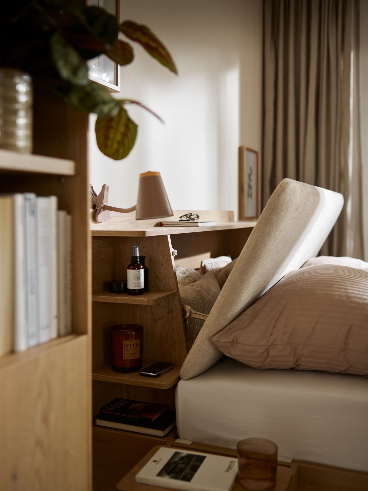 The Well bookcase bed was designed as the center of a calm, well-organized bedroom. Combining a place to sleep with a thoughtful storage area around the headboard allows you to have the most necessary things always at hand and builds everyday comfort. The furniture is available in several sizes, so you can easily fit it into your bedroom.