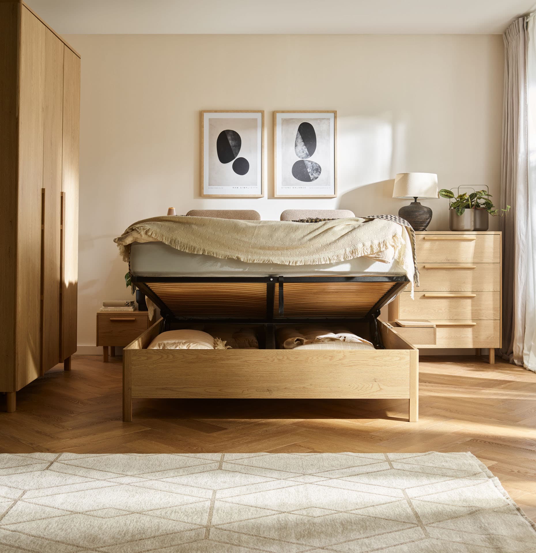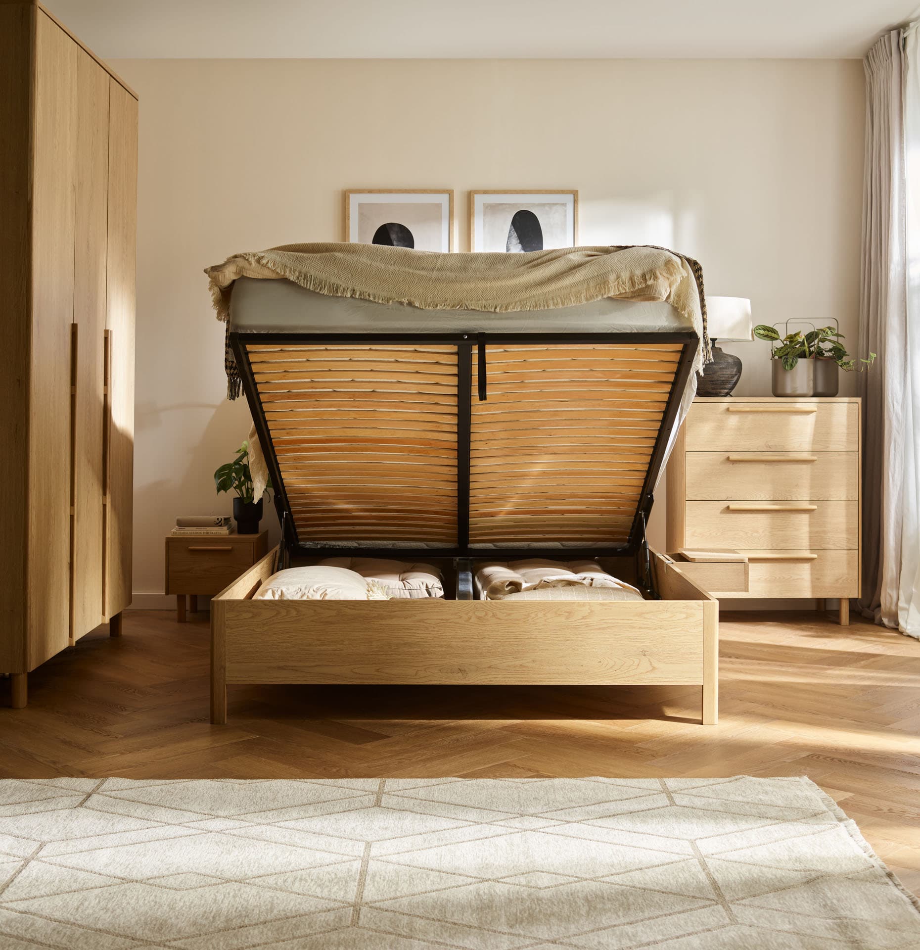 - It is also possible to use a liftable frame, which increases the functionality of the bed and provides efficient access to the space under the mattress.