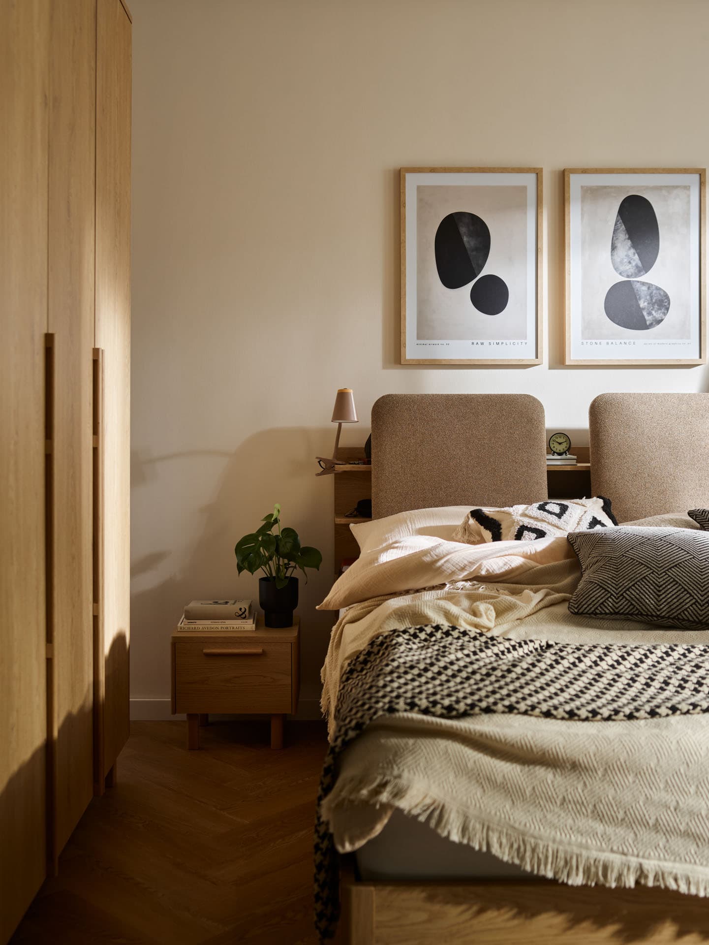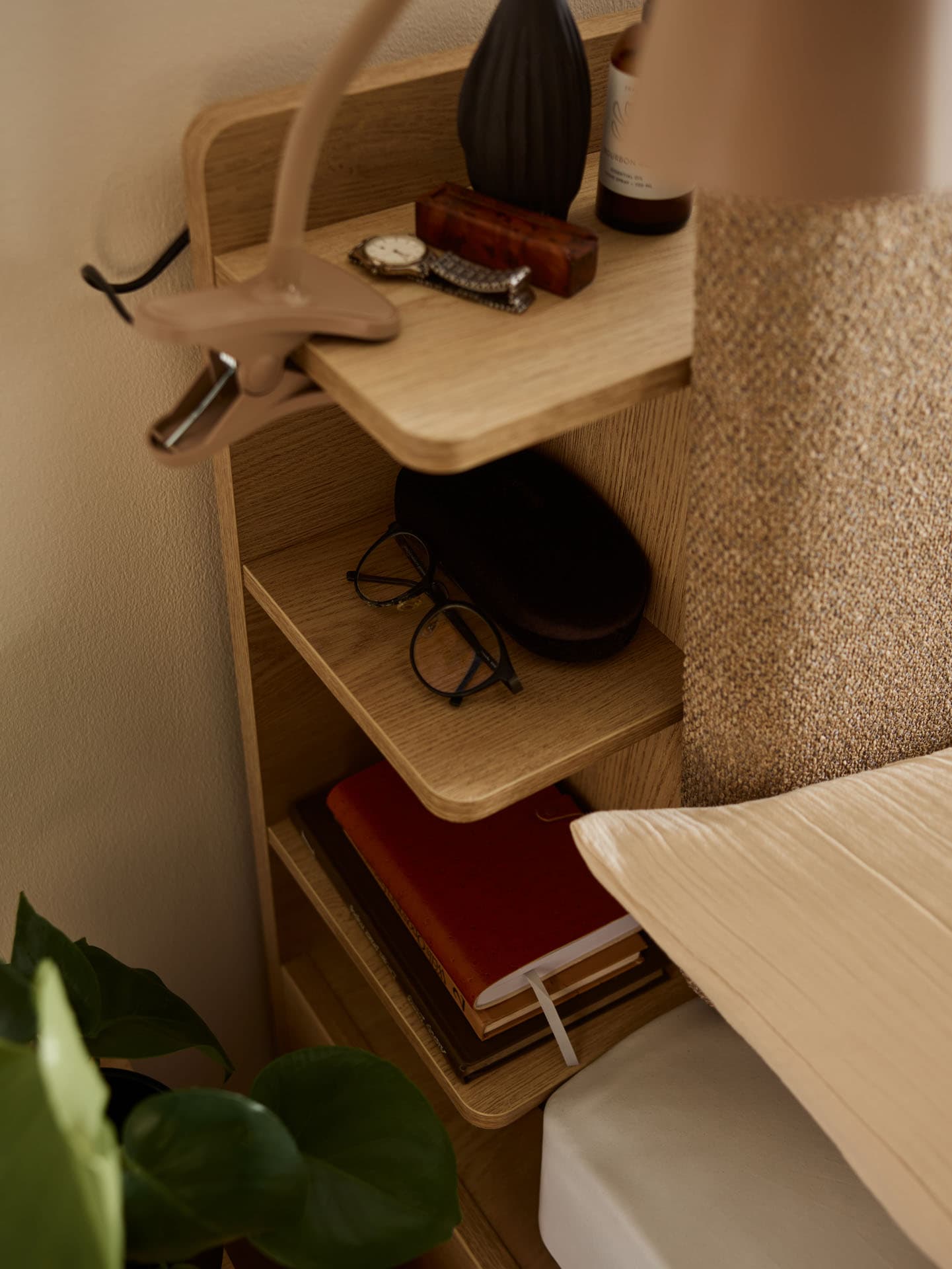 The Well bookcase bed was designed as the centerpiece of a calm, well-organized bedroom. Combining a place to sleep with a thoughtful storage area around the headboard allows you to have the most necessary things always at hand and builds daily comfort without the need to reach for additional furniture. The model of this bed is available in several sizes, so you can easily fit it into your bedroom.