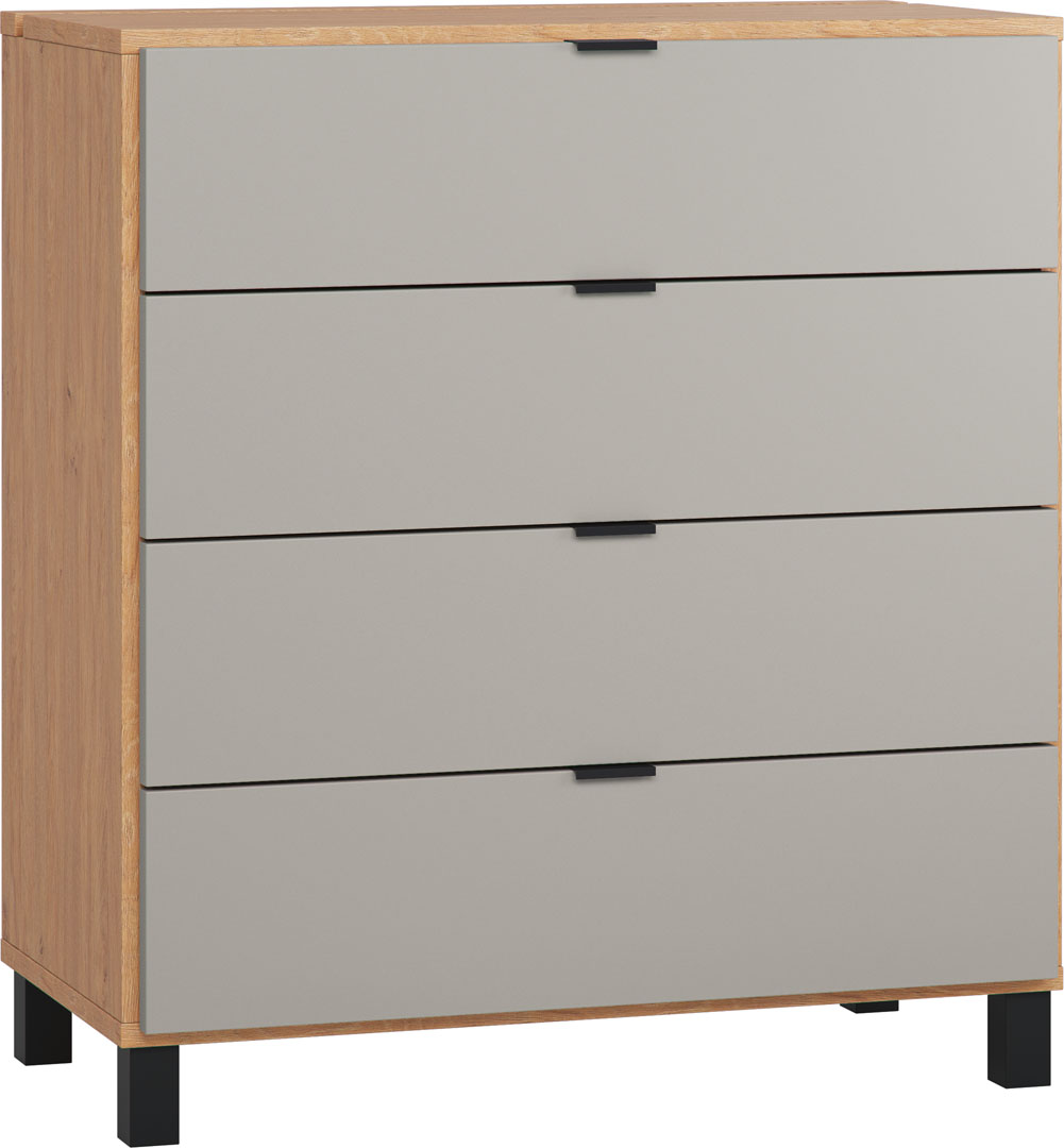 - The drawers of the chest of drawers have Silent System, thanks to which even a sudden closing will not cause the fronts to hit the furniture. Thanks to the exact fit of the slides (drawers use the full depth of the furniture), you will not "store air" in it.