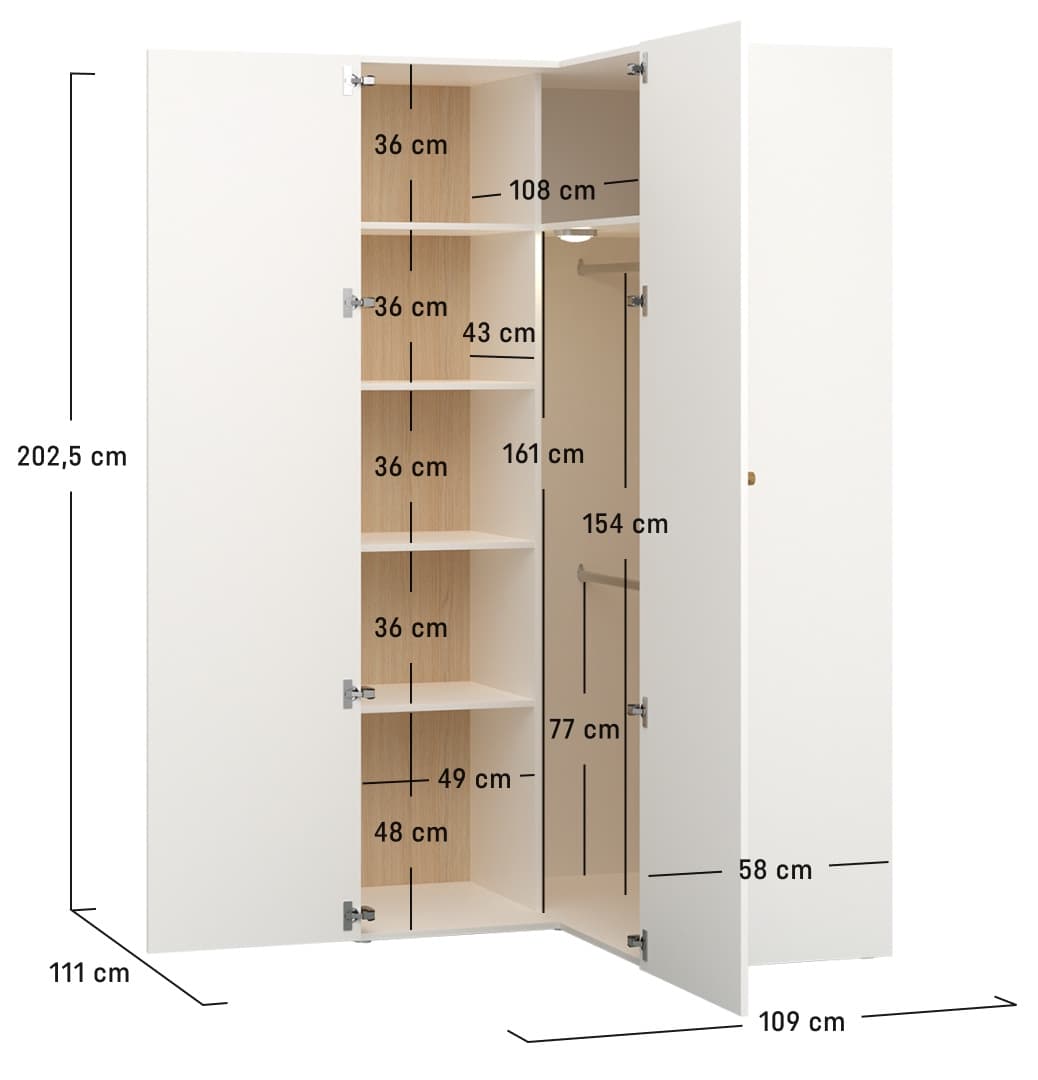 - Using the VOXBOX program, you can test your interior design idea with the corner closet.