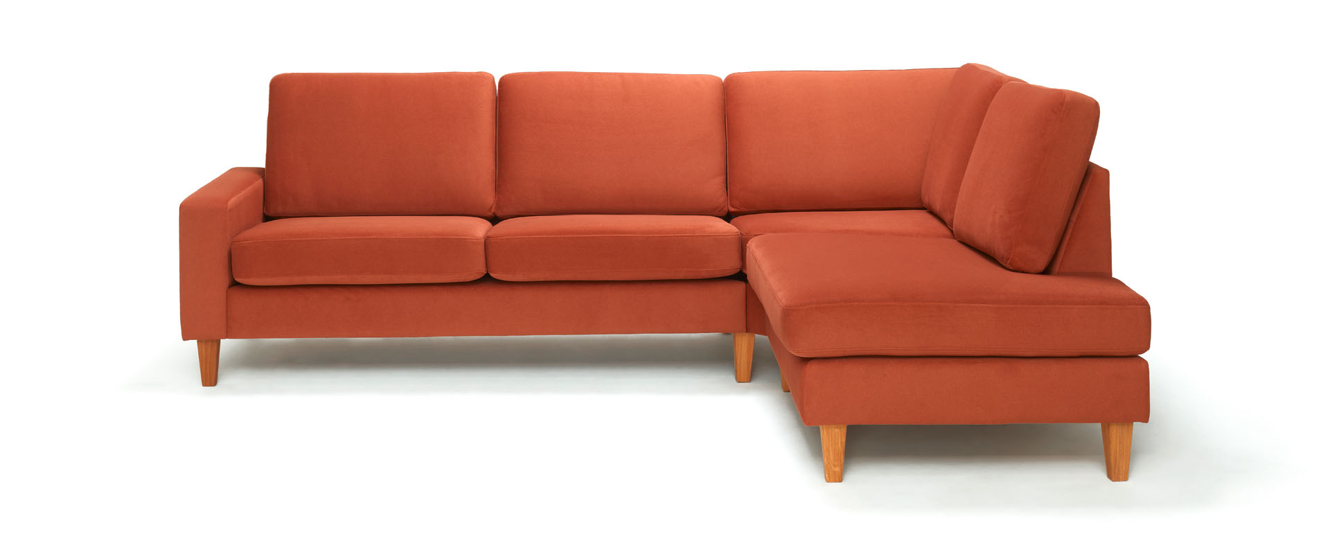 The seat of the corner is filled with springs and HR foam. The backrest cushions also contain HR foam. The frame of the furniture was created from wood, plywood and furniture board. There is a choice of oak or metal legs.