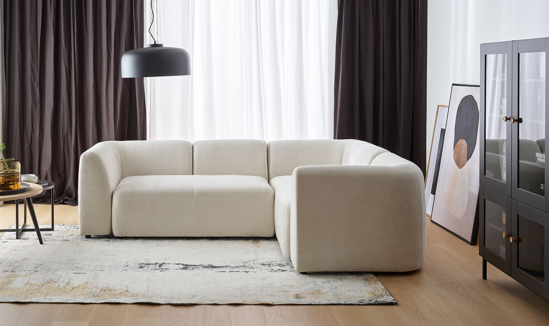 - The Nui corner sofa comes in a total of 6 editions that differ in shape and size. To further increase the relaxation space, a matching pouffe can be purchased for the corner sofa.
