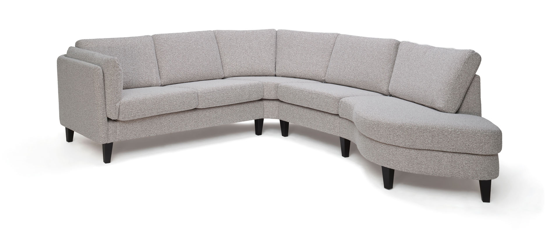 This is a corner sofa that attracts the eye. Thanks to the semi-circular form of the chaise longue, it gains a unique character. High legs give it lightness and make it easier to keep it tidy. You can comfortably sit on it or lie down while reading a book. Customize it by choosing the type of armrests and legs. But that's not all - choose the fabric you like best and give it your individual style.
