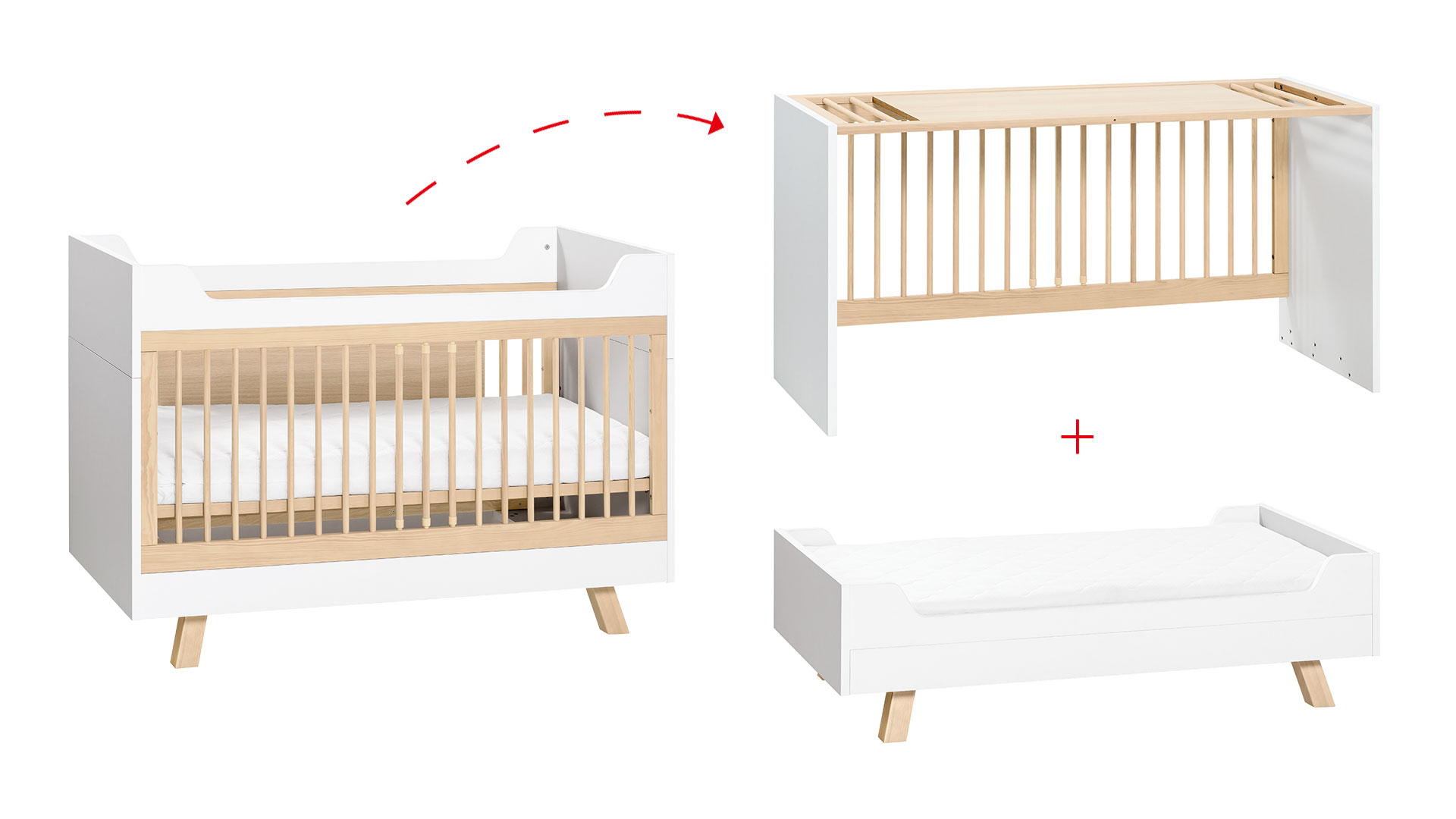 - A smaller version of the crib with a sleeping surface of 60x120 cm is also available.