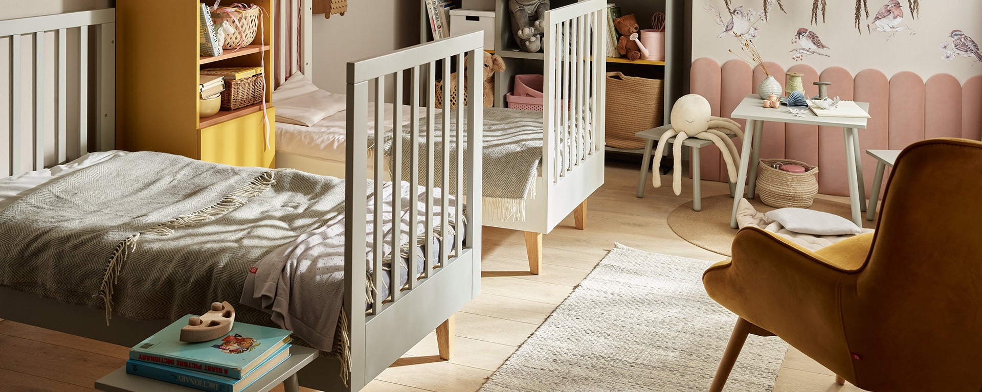 The Lounge crib with adjustable floor height will work well for the next stages of the toddler's development. Over the years it can be transformed into a couch for an older child. The furniture fits mattresses of 70x140 cm.