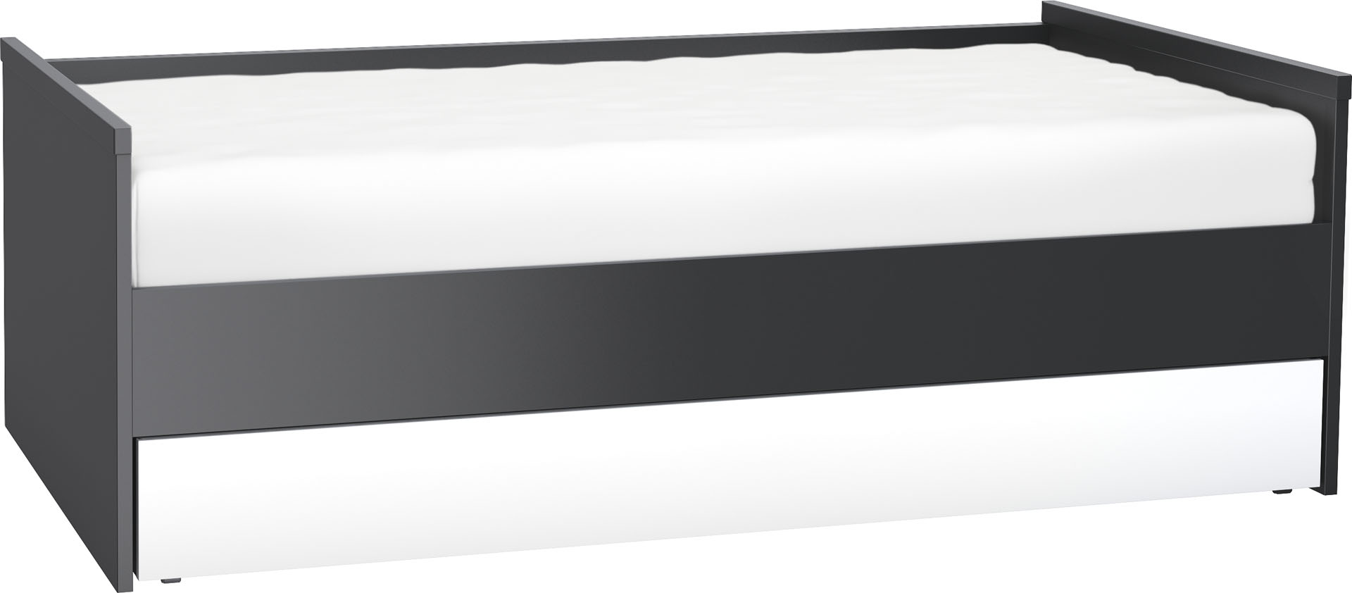 The functional sofa bed from the Young Users collection has a number of practical solutions that make everyday life easier. A tilting frame provides quick access to the bedding container, and an additional drawer saves space in the closet.