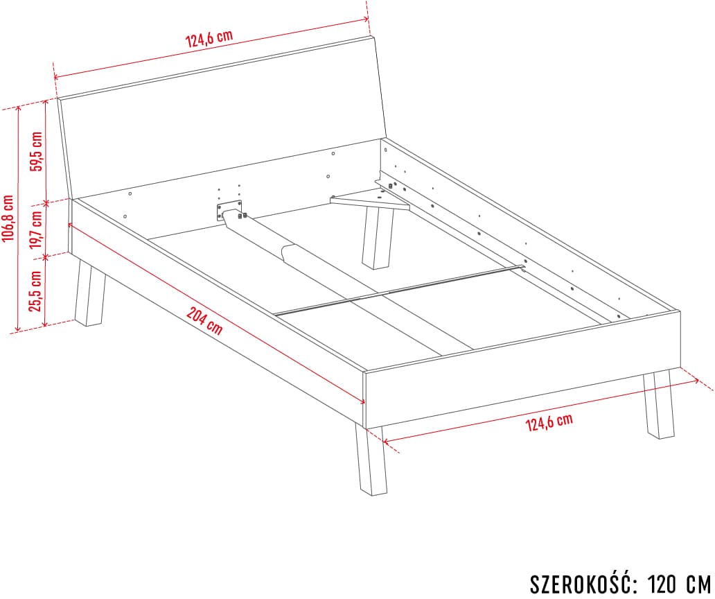 - The bed base is height adjustable. It can be mounted on one of 2 levels, adjusting the furniture to the thickness of the mattress.