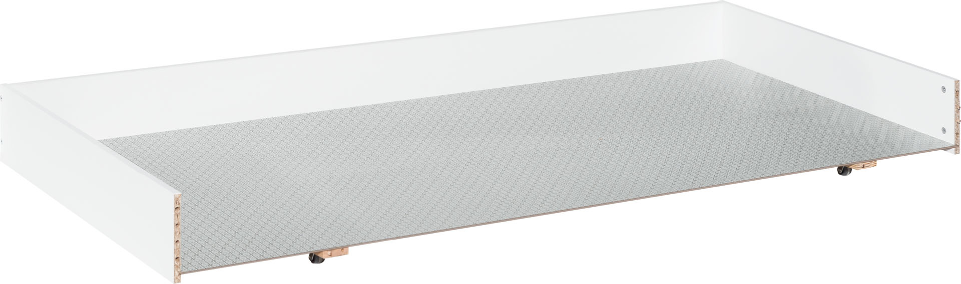 The drawer can be placed in the sofa from the Concept by VOX collection. It will be useful for all those who need additional space for storing spare bedding, toys or other items. Rubber wheels on which the drawer can be freely pulled out is a solution that is also safe for wooden floors. The white drawer is screwed to the graphite sofa fascia (the fascia is sold with the sofa) - the sofa fascia is the front for the drawer.