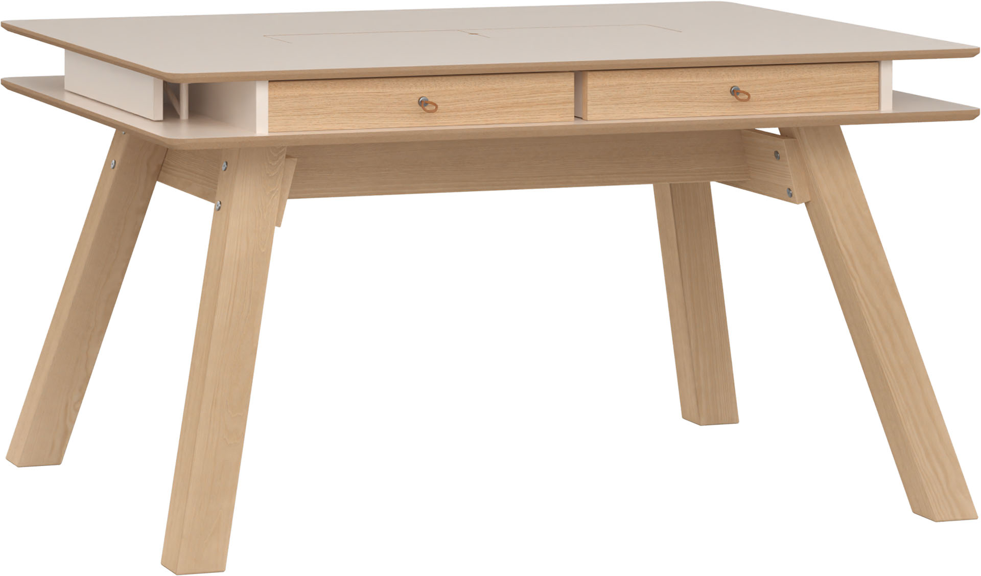 - The table top has a sand beige color.