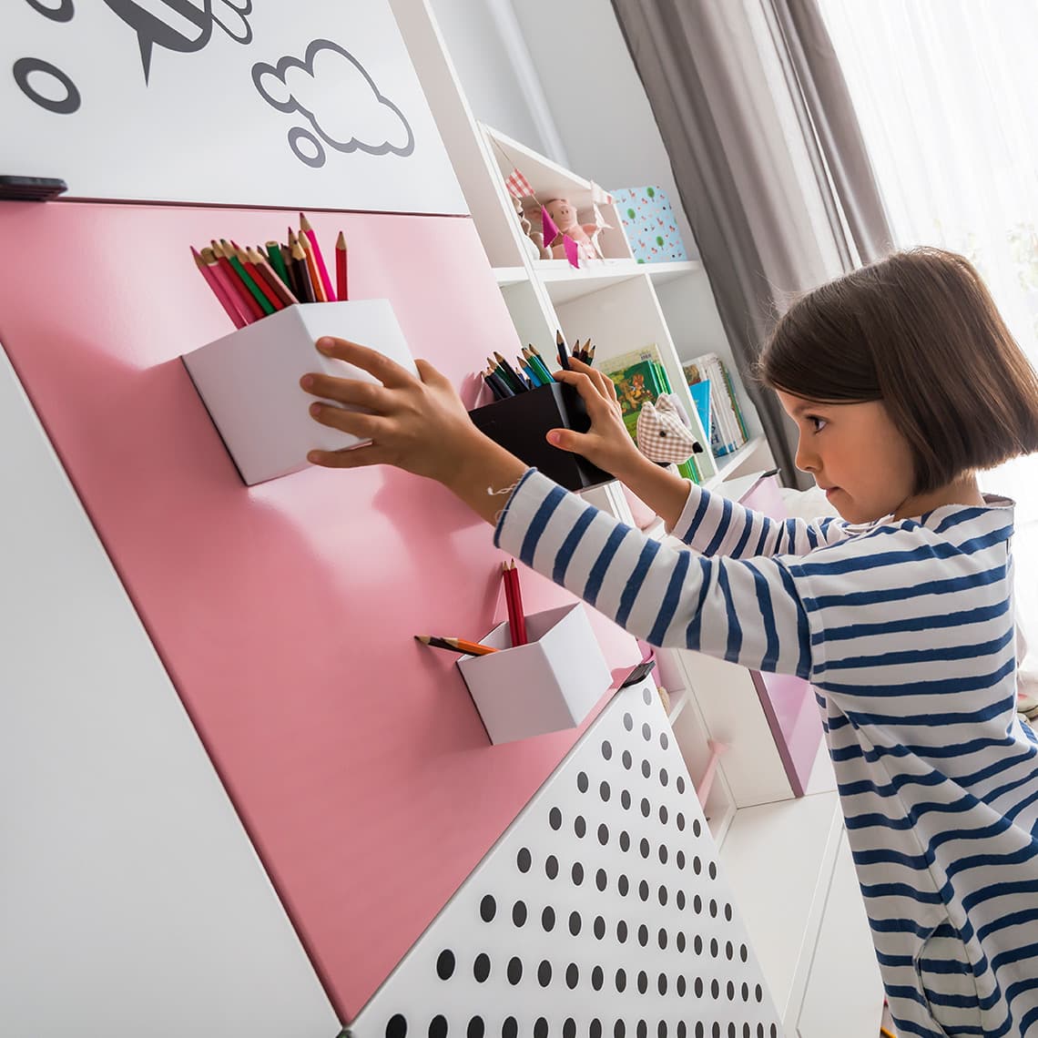 - You can draw on them with dry-erase markers, attach pictures to magnets, play and write down various things.