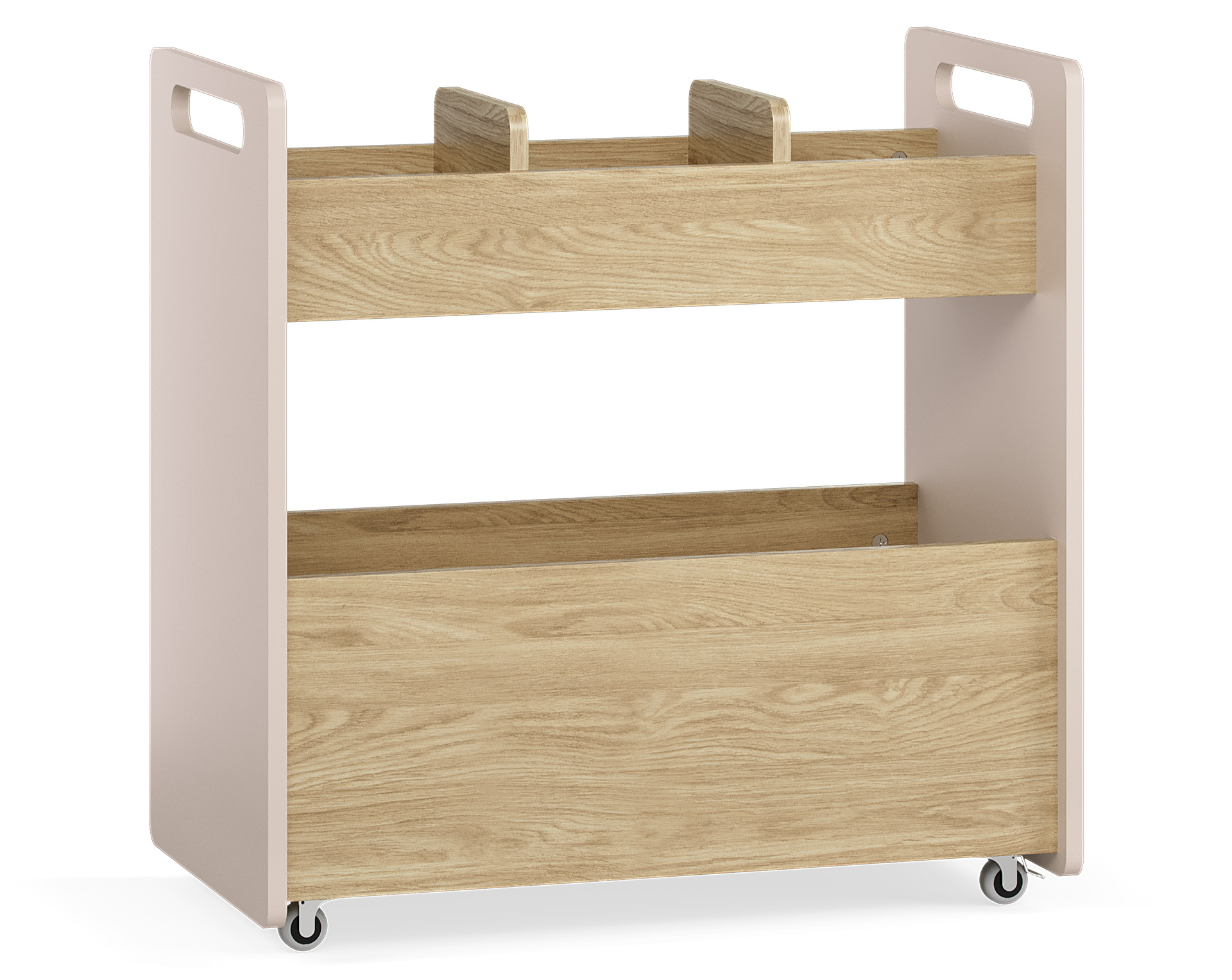 - The bottom part of the accessory cart houses a deep compartment for books, blocks or teddy bears. At the top is a shallower container with two compartments. It will work well, for example, as an organizer for crayons and markers.