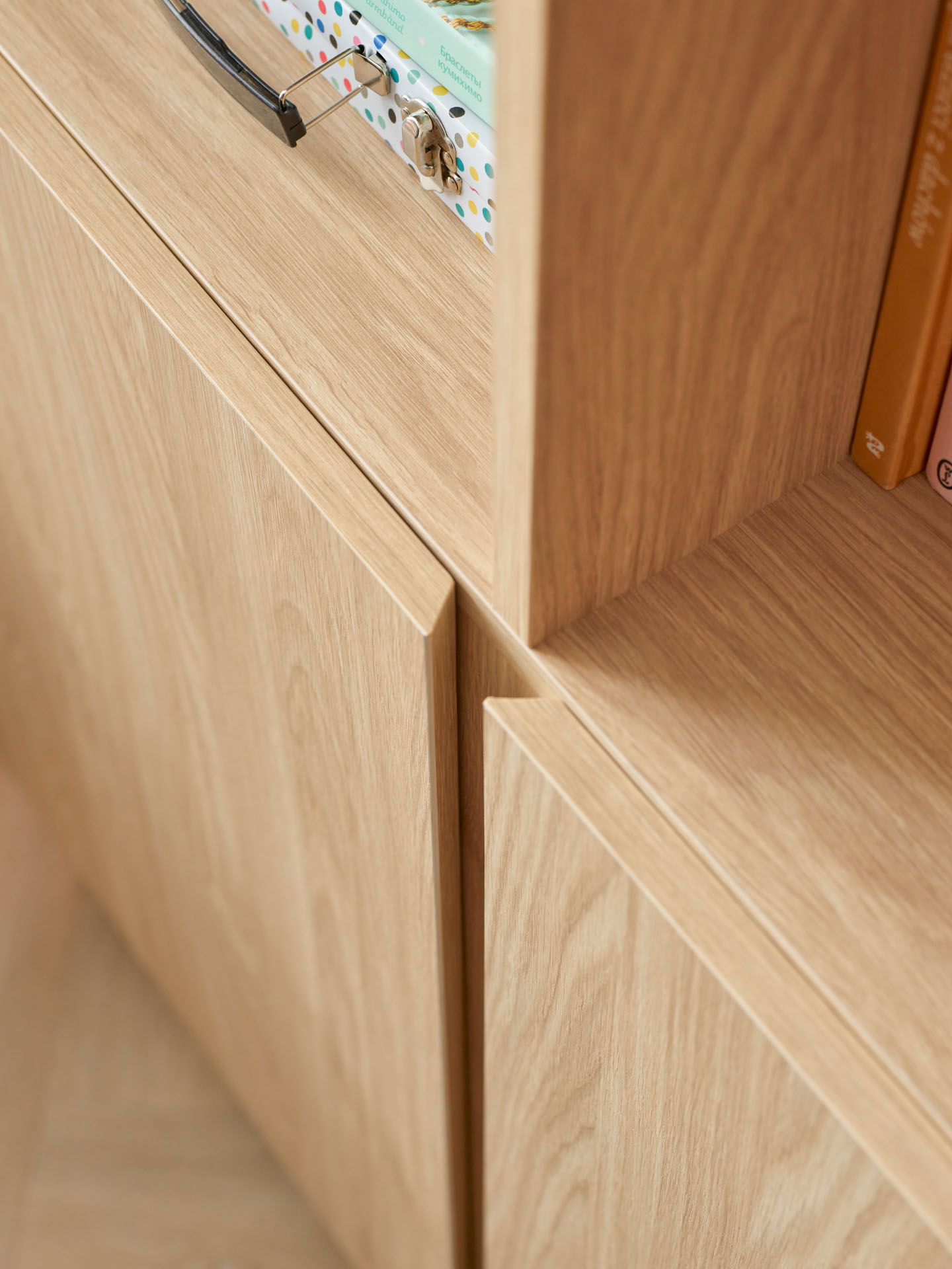 - The doors of the bookcase are equipped with a silent closing mechanism.
