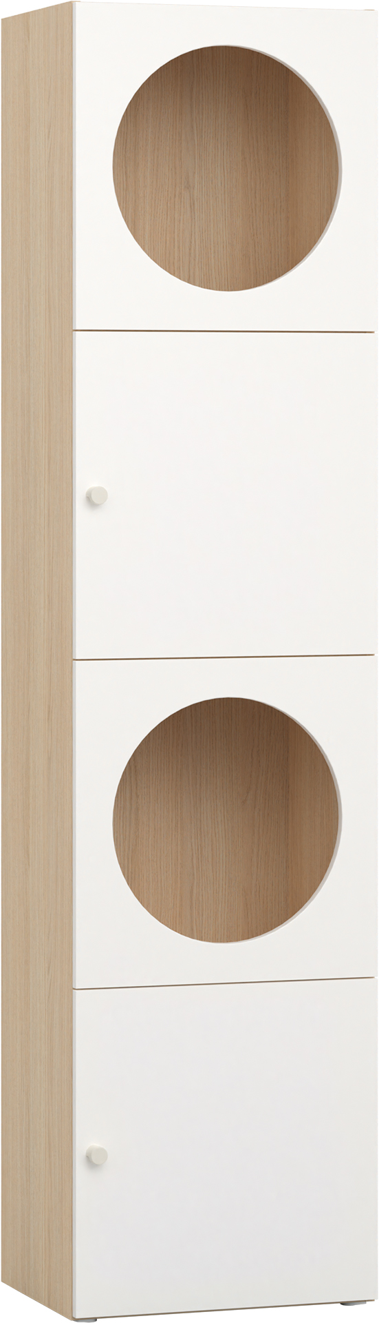 - By selecting fronts for it, you can customize it according to your needs. Special bores are prepared in the sides of the furniture, so you can choose from a variety of layouts. It can have a full door or be partially open thanks to doors with round holes. This allows you to hide less aesthetically pleasing items, and display your favorite gadgets and decorations in an interesting way.