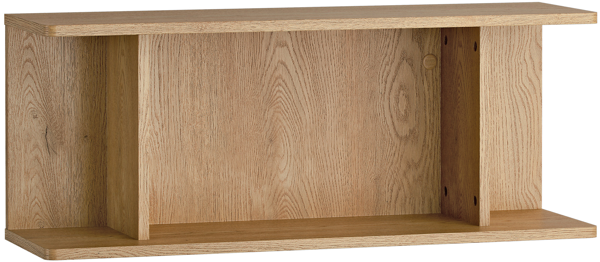- The shelf has an oak wood color
