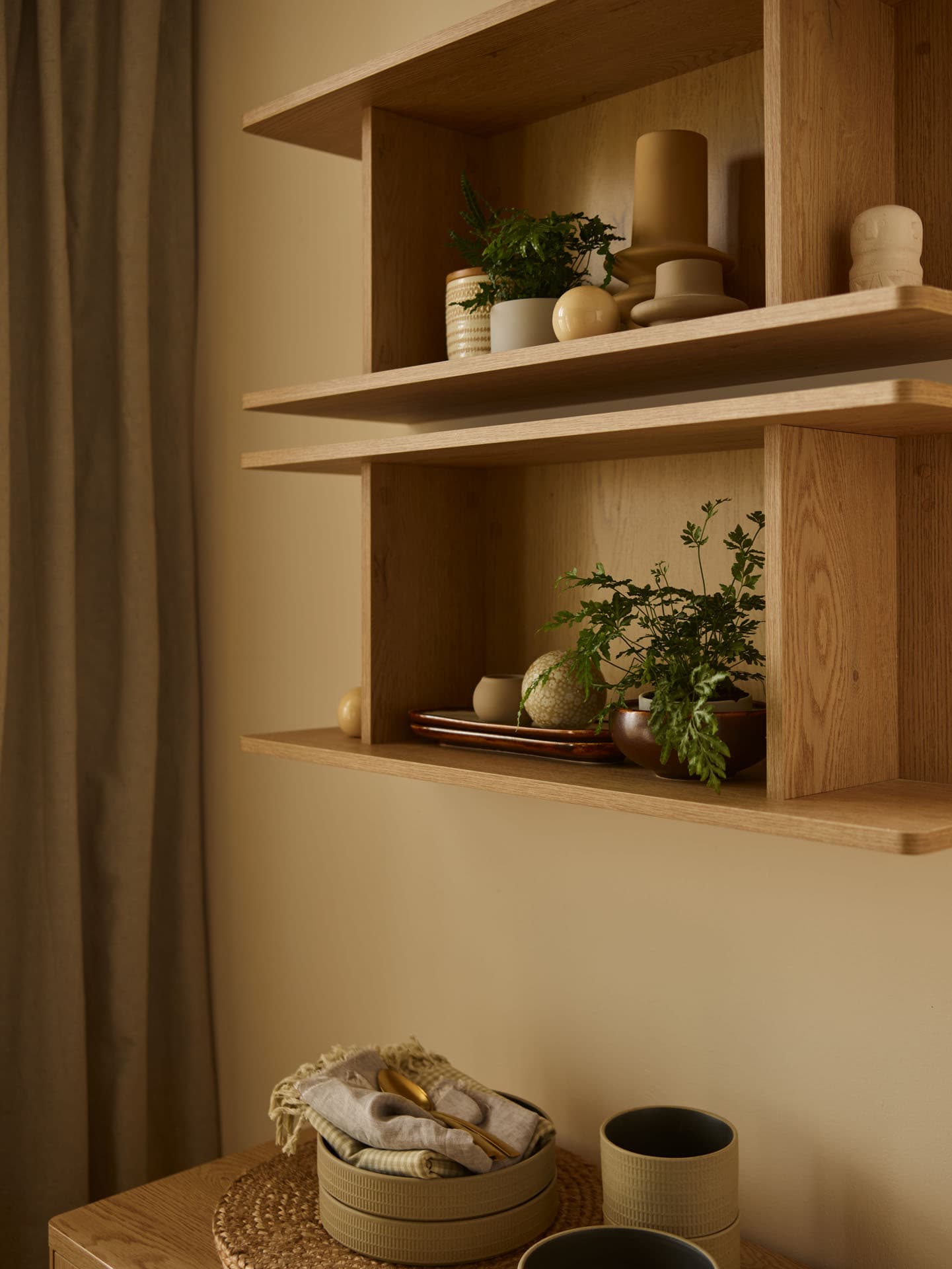 - The shelf from the Well collection will also go well with a buffet or dresser from the same series.