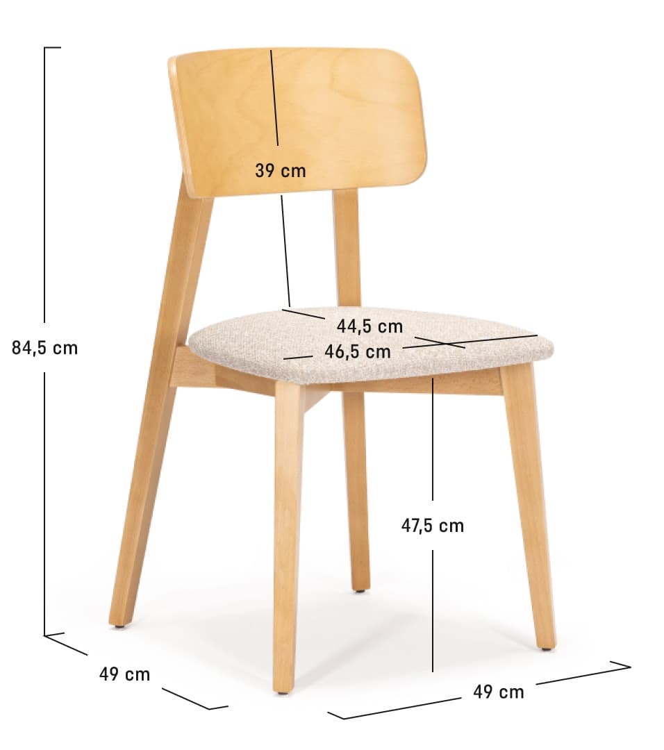 - The frame of the furniture was created from beech wood. The back of the chair is made of beech plywood. Both elements are stained in oak color or painted with opaque black paint.