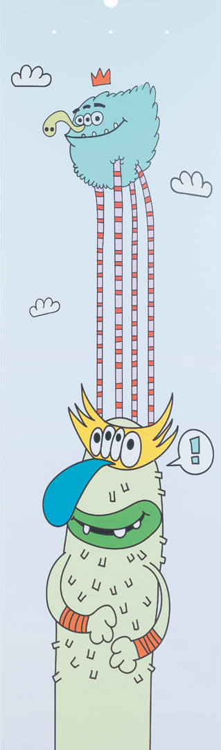 There are several collections of overlays in the Nest by VOX collection, which can be placed in cargo closet and multi bed containers. There are 6 color versions available (overlays: pink, yellow, navy blue, light blue, green and red) and 4 collections with graphic prints (collection: Monsters, Voila, Art and Krata). The present overlay is part of the Monsters collection and is designed to be placed on the cargo closet.