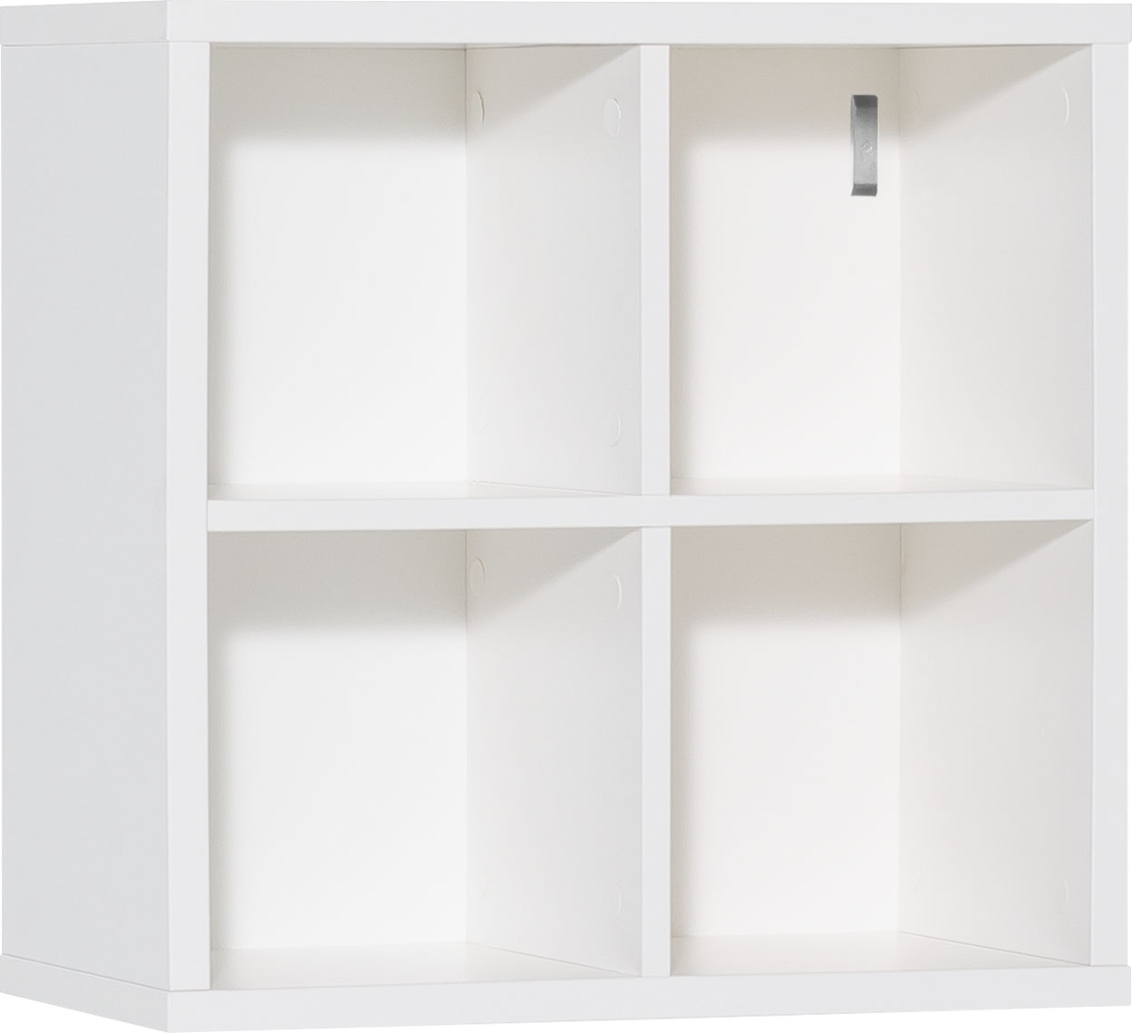 - The interior of the cube shelf hides 4 functional spaces for various types of items. Here you can organize books, records, games, tableware or things related to your hobbies.