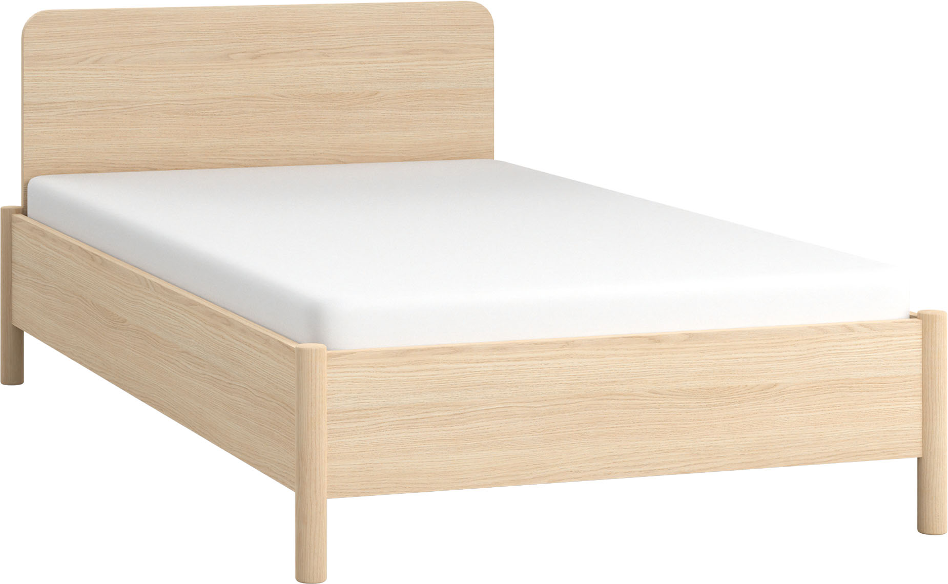 - The high oak legs make the bed look light and graceful, and make dusting in the bedroom easier. Their interesting cylinder form with a beautiful detail at the top gives the furniture an original character.