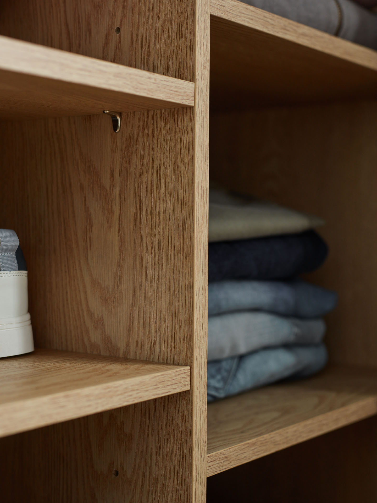 - In VOXBOX, you can test the best positioning of the Stor wardrobe in the room and juxtapose it, for example, with Linerio slatted panels, with which it blends perfectly.