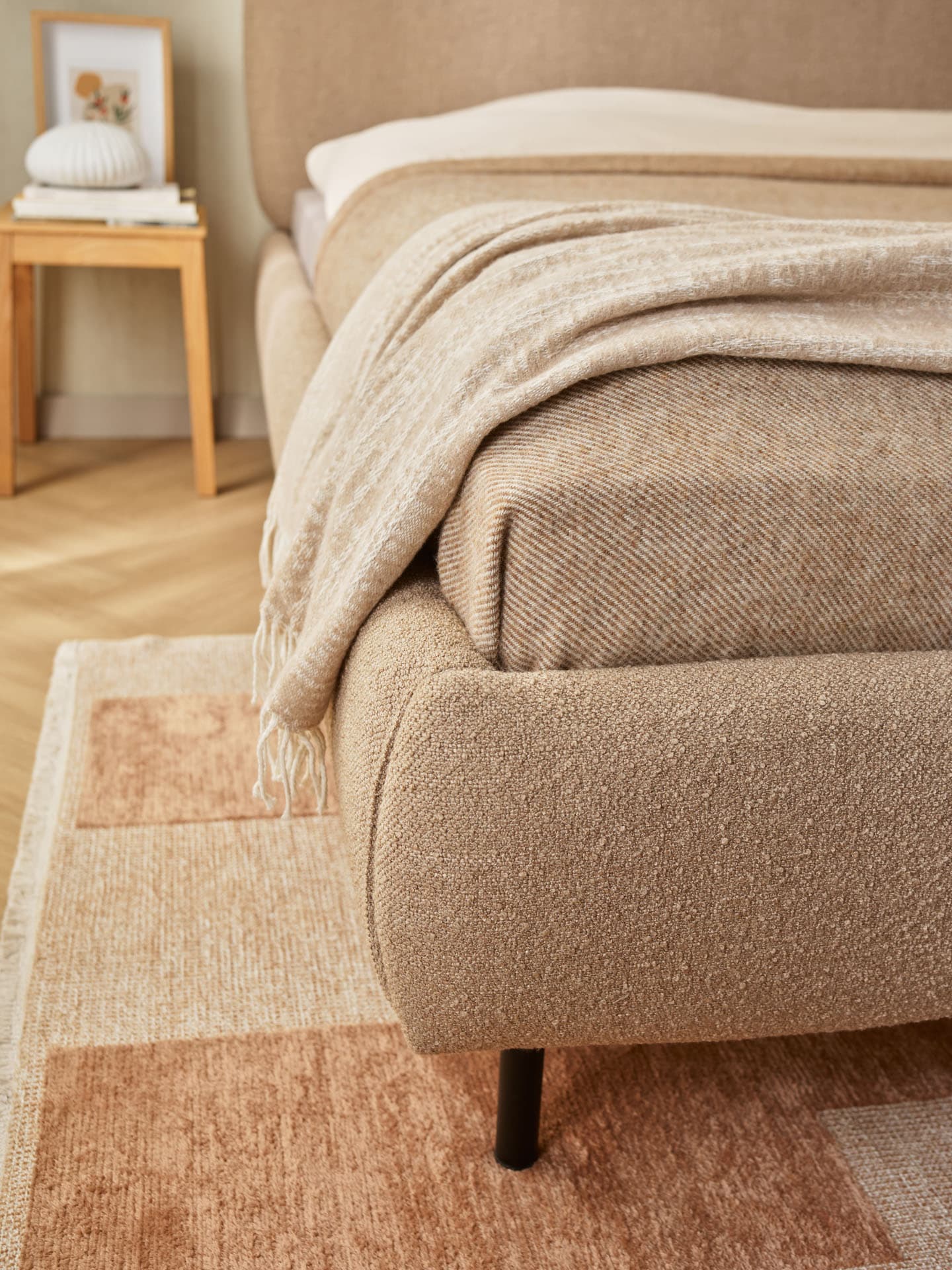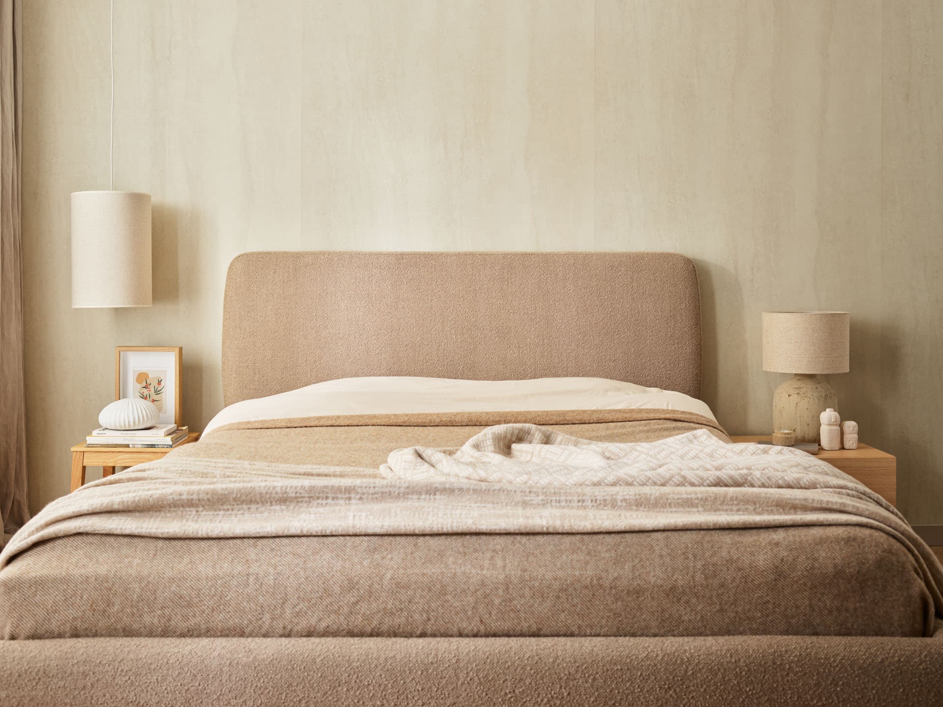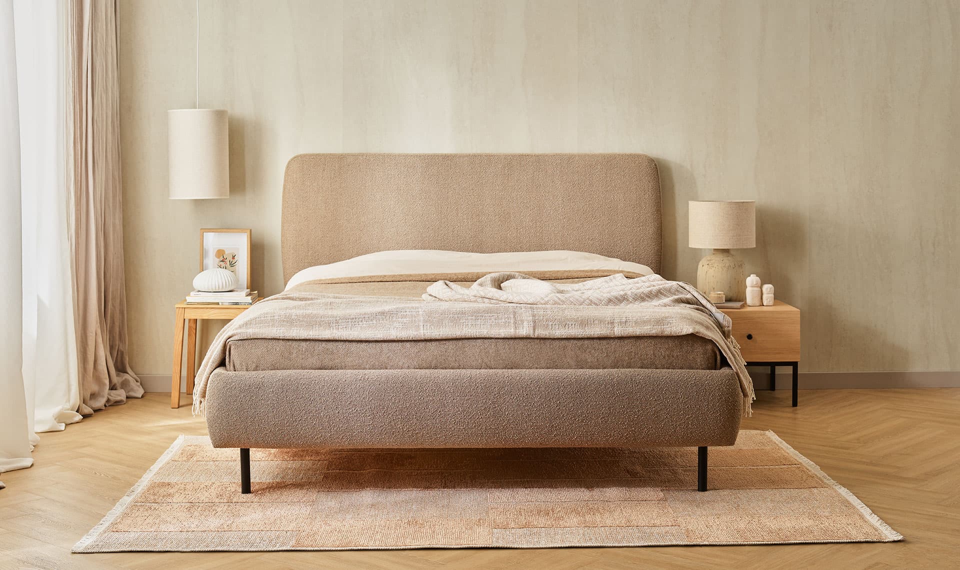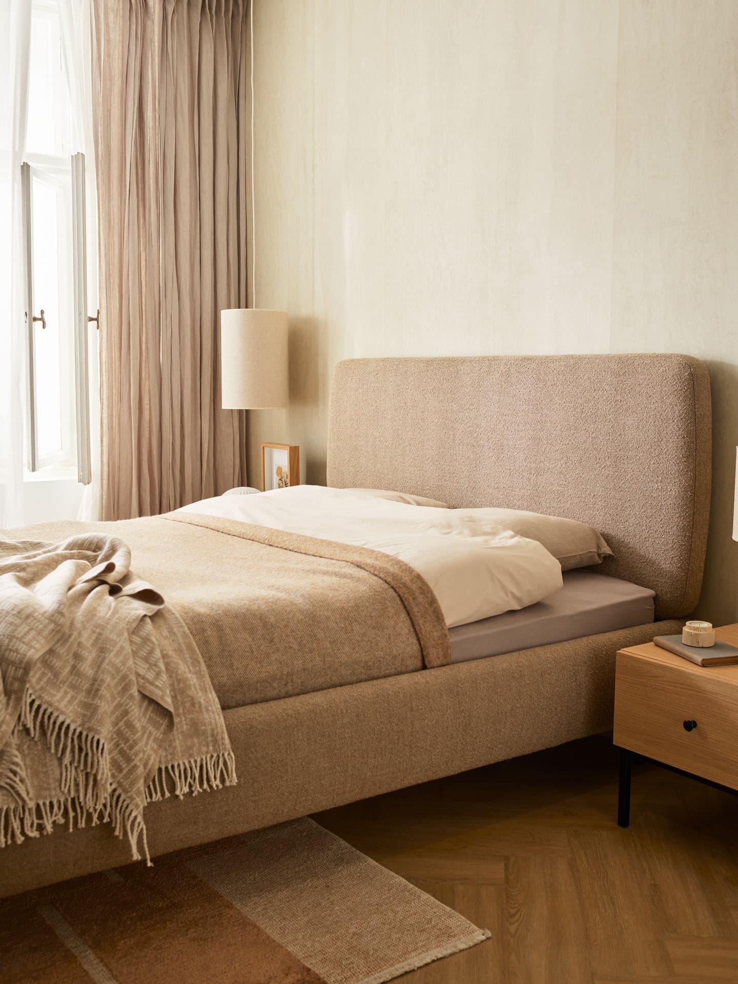 The elegant Calme upholstered bed with its timeless design provides a comfortable sleeping space for two. The rounded frame, curved headrest and high legs give the furniture lightness. With a wide range of upholstery to choose from, the bed will find its way into a variety of interior styles.