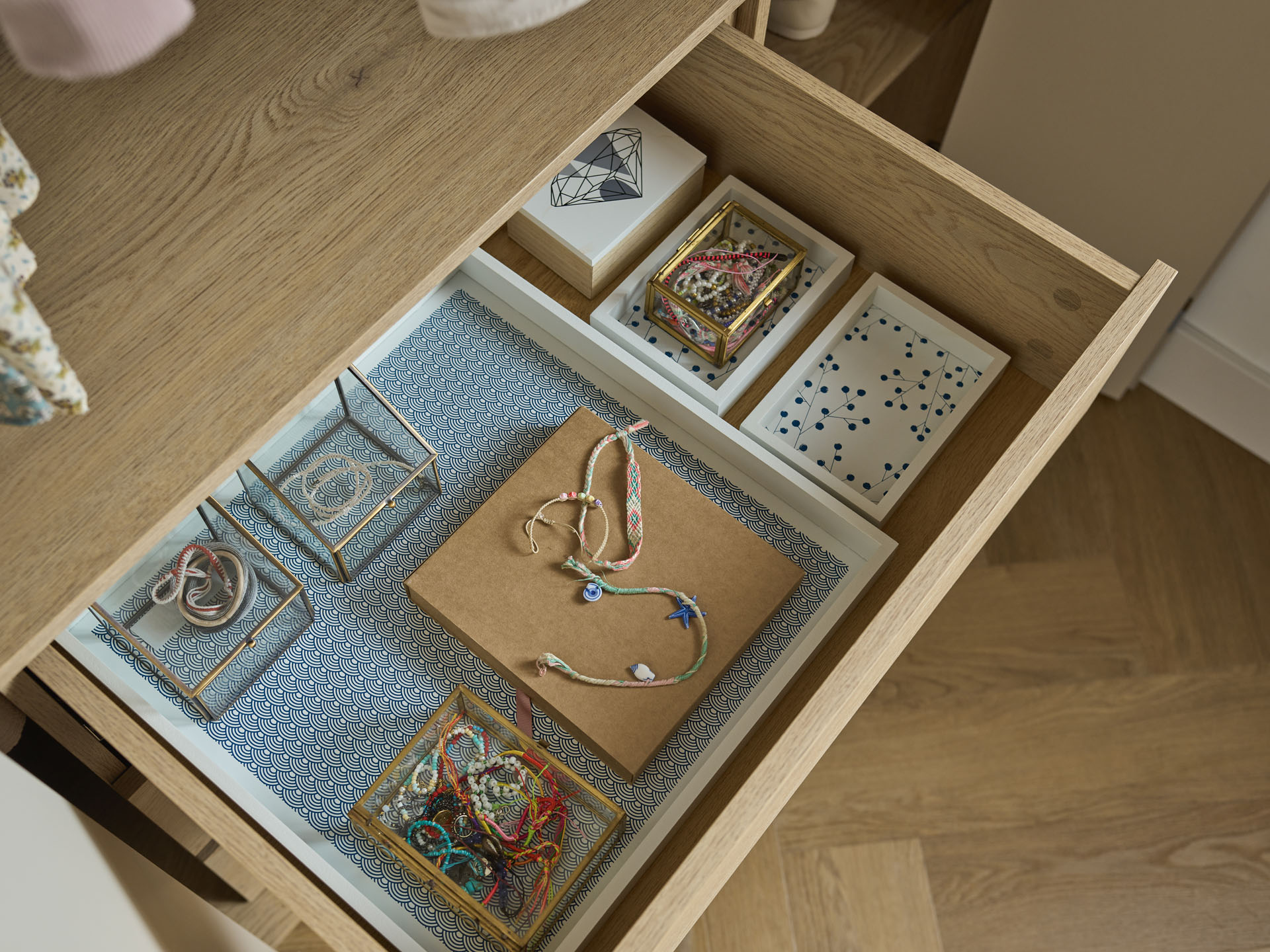 - The back walls of the furniture and the bottoms of the drawers (in selected interior packages) were made of HDF board.