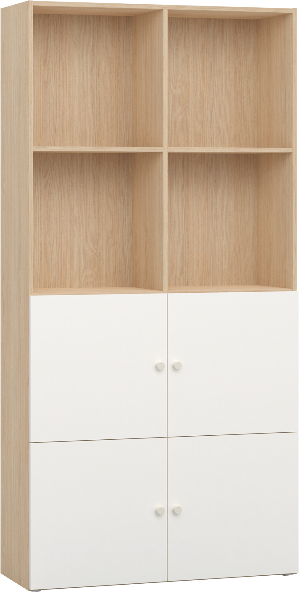 Open, closed or with practical openings for displaying items - a wide bookcase from the Reli collection can be exactly how you want it. You can buy a piece of furniture with a configured set of fronts, or add fronts and handles to it and create your own set. This will allow you to easily organize books, toys or various accessories.