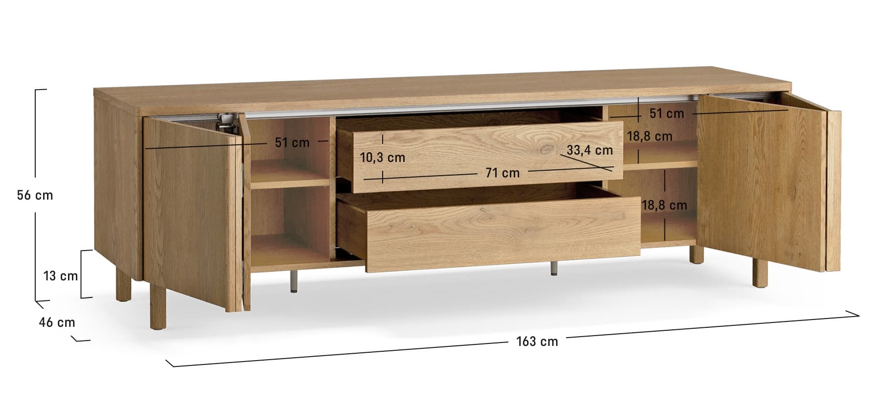 - The whole is based on oak legs of 13 cm height, which give the solid lightness and allow easy cleaning under the furniture.