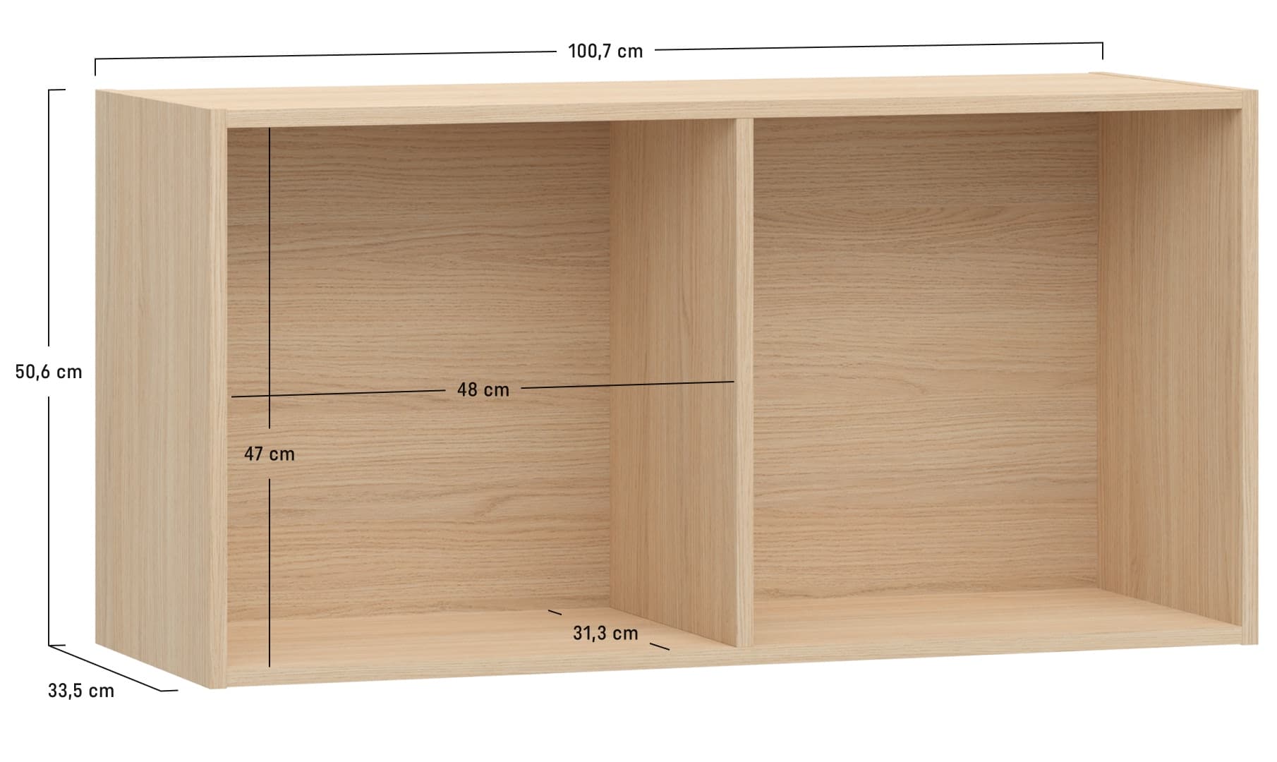 - The shelf has a vertical partition, which divides its interior into 2 equal spaces. By purchasing additional shelves or Plus filler, you can make organizing small items easier.